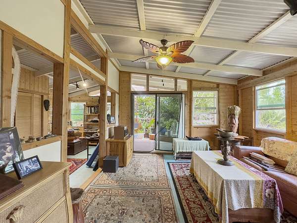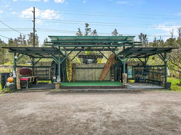 Welcome to Tiki Mama's, a one-of-a-kind private estate and potential income-generating venue set on 11+ fully fenced acres with highway frontage-your first stop after Captain Cook. This unique property is brimming with possibility, offering a blend of tropical creativity, functional infrastructure, and endless vision. Tiki Mama's iconic outdoor stage and covered seating areas, ideal for events, workshops, classes etc. At the heart of the property is a approx.1,024 sq. ft. permitted kitchen/office/bathroom building, plus 9 additional structures, including: Living Area/ Kitchen Hale 1,120 sq. ft. Bedroom/Bathhouse 1,200 sq. ft. Art Studio 1,000 sq. ft. Gallery 600 sq. ft. Covered shed 160 sq. ft. Big barn 2,000 sq. ft. perfect for animals, agriculture, or storage Large 100 ft. Greenhouse with concrete floor and additional drying and storage area Covered outdoor pergola and fire pit, perfect for gatherings Outdoor Shower Many Tropical Plants/ Fruit Trees With 3 gated entrances, the property layout supports a wide range of uses-think farm-to-table cafe, artist retreat, fruit stand, AG-based education site, or sustainable food hub. Road To The Sea offers 4WD (or hiking) Beach access. Located in the growing community of Ocean View, you'll enjoy convenient access to grocery stores, restaurants, gas stations, a post office, a hardware store, and more. Approx. 1 hour 20 minutes to Kailua-Kona, 40 minutes to Ho'okena Beach, and 15-20 minutes to South Point and Naalehu. This is an exceptional opportunity to live, create, and thrive in a private rural setting, yet still enjoy easy access to town via Highway 11. Lava Zone 2. Flood Zone X. The information herein may contain inaccuracies and is provided without warranty or guaranty of any kind. Agents and Buyers must independently verify any info they deem material or important to their purchase or any offered price thereunder.