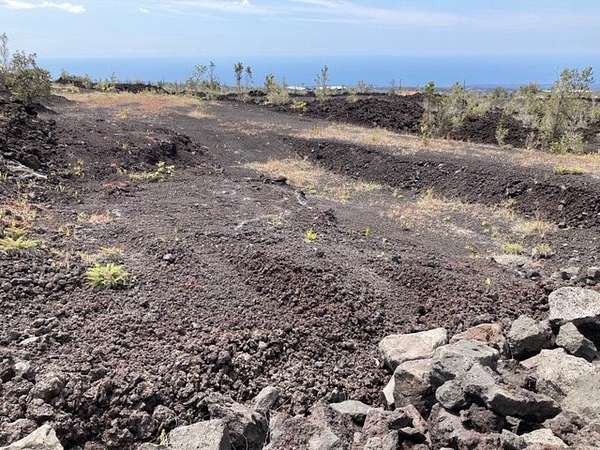 Hawaiian Ocean View Estates - ribbon lot (89 x 489 ft) on the makai side of Aloha Blvd and in the lower quarter of Ocean View. This lot was graded in the past with a house pad so the ground work has already been done. Great ocean and sunset views! Per Helco, power is paid in full, so no SSPP assessment (old power). Front stakes are visible so re-staking will not be paid by seller. Lava Zone 2, Flood Zone X. Easy access to Highway 11 via Aloha Blvd for work or shopping trips to Kailua-Kona. Kona is just over an hour away from HOVE and it offers most major services and an international airport. Ocean View has some good restaurants as wells as markets, gas stations, thrift stores, a garden shop and many other small business choices. Nearby beaches include black sands at Punalu'u and green sands at Kalae.