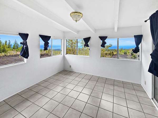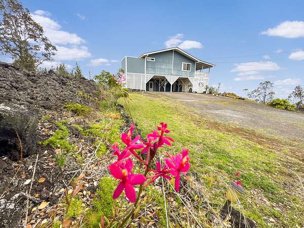 Spacious Gated Home with Ocean Views in Hawaiian Ocean View Estates Discover this expansive 5-bedroom, 3-bath residence located in the lower section of Hawaiian Ocean View Estates, situated on two side-by-side one-acre parcels. Enjoy sweeping ocean views from the oversized covered lanai-perfect for relaxing or entertaining. Enter through stately gates into a circular driveway that offers ample parking. Inside, the upper level welcomes you with soaring vaulted ceilings that fill the space with natural light, complemented by brand-new flooring throughout. The spacious kitchen offers plenty of room for cooking and gathering, while the large laundry room adds convenience and functionality. Conveniently located just minutes from the highway for quick and easy access. This unique property offers privacy, space, and incredible views-your island retreat awaits! Sale includes TWO 1-acre parcels.