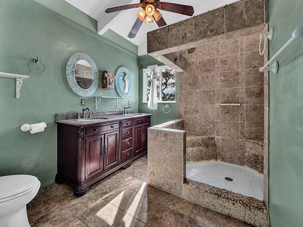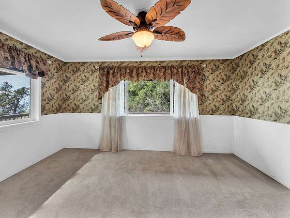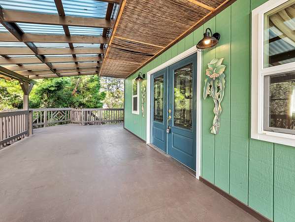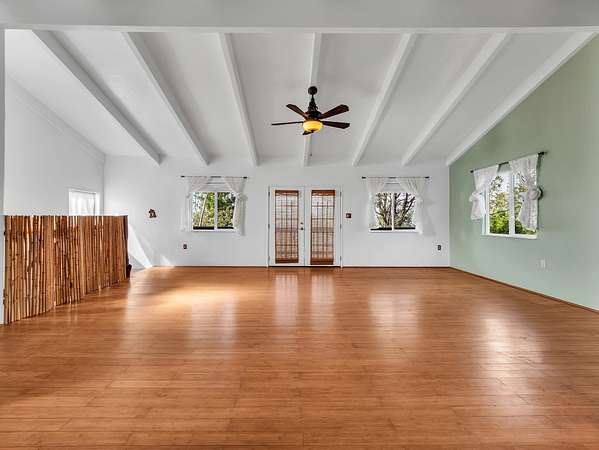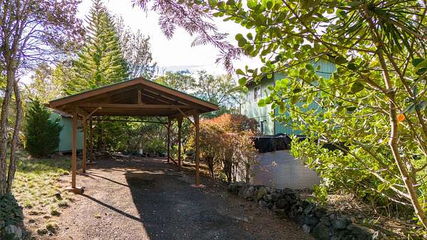 Charming and Unique 3 Bedroom / 2 Bath Home in Hawaiian Ocean View Estates. The home features multiple lanais all with ocean views and multiple entrances into the home offering convenient access to different parts of the house and property. Walk up a few stairs onto the front lanai and enter the home in the large living room with a moveable tiki bar and separate dining room that separates the living area from kitchen. Two bedrooms are located on the main level with the kitchen and living areas while the upstairs has a loft style primary suite with a huge walk in closet and tiled walk in shower. The lanai off of the primary suite has a great ocean view too! Property Features: ~ Detached Storage Cabin for Yard Tools & Beach Gear ~ Separate Carport ~ Landscaped Trails around the Property Surrounded by Ohia Trees ~ Mature Fruit Trees: Avocado, Mango, Fig, Lemon, Calamondin ~ Newer 10,000 Gallon Catchment Tank ~ Washer/Dryer Inside Home ~ Sale includes TMK 3-9-2-117-26 making this a 2 acre property! ~ Pre-Listing Home Inspection was Performed by Top Notch Home Inspection and made available for Serious Buyers Ocean View is a welcoming community with 2 different shopping areas.. Two Supermarkets, Two Gas Stations, Ace Hardware, L&L BBQ, KaiLoki's Restaurant and an Ocean View Community centre with activities for all. About an hour south of Kailua Kona and 20 minutes to Naalehu. Roads are paved and private and there is a Road Maintenance fee of $300 a year (subject to change) for both lots.