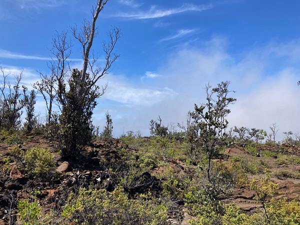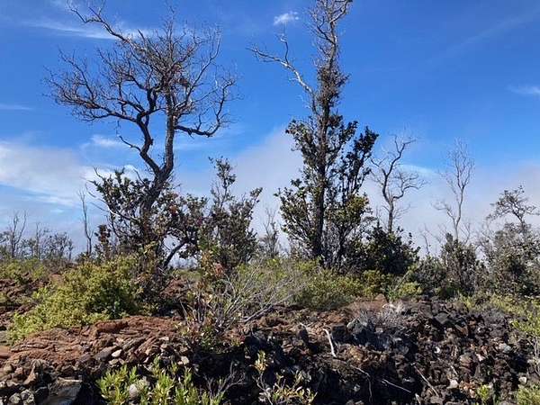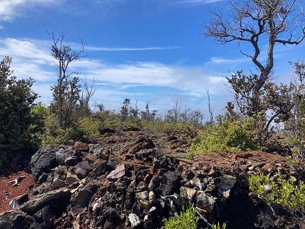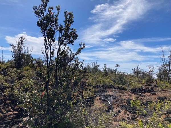 Hawaiian Ocean View Estates - nicely forested ribbon lot (89 ft x 489 ft) in upper Ocean View at approximately 4300 ft elevation. This makes for warm, pleasant days and cooler nights. Beautiful pahoehoe lava throughout with ohia trees and a'li'i bushes. Sparsely populated neighborhood, so very quiet and peaceful! There's a corner stake at the lower front corner of the lot, so it's easy to locate. No Helco power in this area but solar and wind are great off-grid options. Lava Zone 2, Flood Zone X. HOVE is home to several small shopping areas with such businesses as markets, gas stations, restaurants, a post office, hardware store and much more. About 1.5 hours north of the property is Kailua-Kona, where you'll find most major services, big box stores and an international airport.