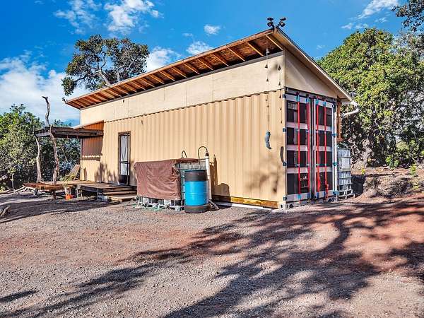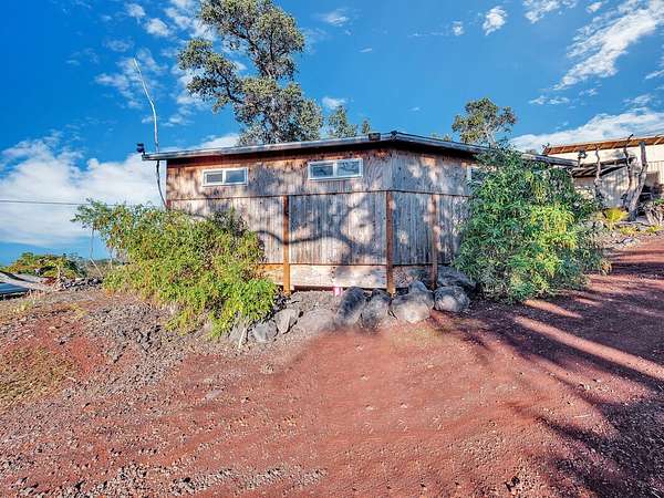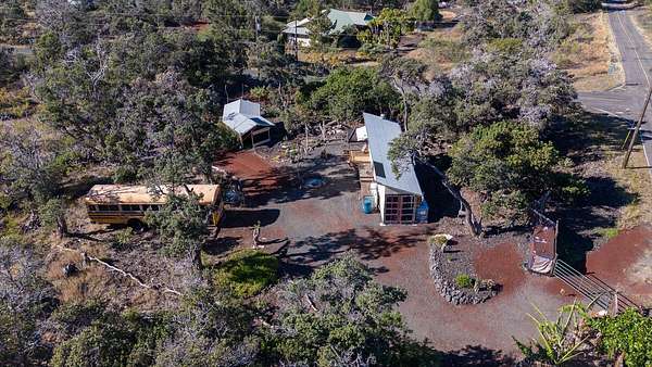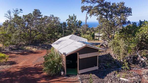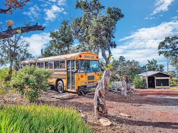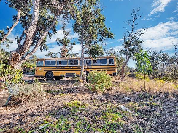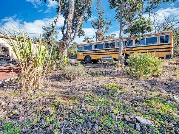 SELLER FINANCING AVAILABLE. BACK ON THE MARKET AT NO FAULT TO THE SELLER. Nestled on a spacious 1-acre corner lot in the lower part of Hawaiian Ocean View Estates, this property is brimming with possibilities. The peaceful location and expansive layout provide a sense of privacy, while the land has been enriched with fertile soil, perfect for gardening and already supporting a variety of flourishing fruits and vegetables. Enjoy breathtaking ocean views from virtually every vantage point, creating a serene and picturesque backdrop for everyday living. A versatile shipping container has been partially transformed into a comfortable living space and workshop, complemented by a separate bathhouse featuring essential amenities. Unique features include a stripped school bus in excellent condition, offering creative potential for additional living space or recreational use. Ample storage solutions ensure that all your belongings are neatly organized, while the property's very fertile land invites endless gardening and agricultural opportunities. With dual gated access providing security and convenience, and plenty of space for future development, this property is the perfect place to bring your Hawaii dream to life. Also included in the sale is the car picture which is a 2001 Nissan Pathfinder.