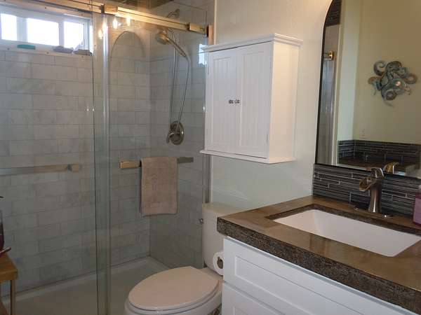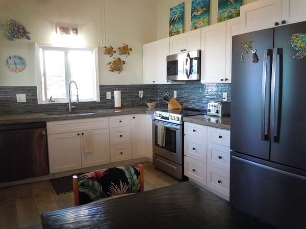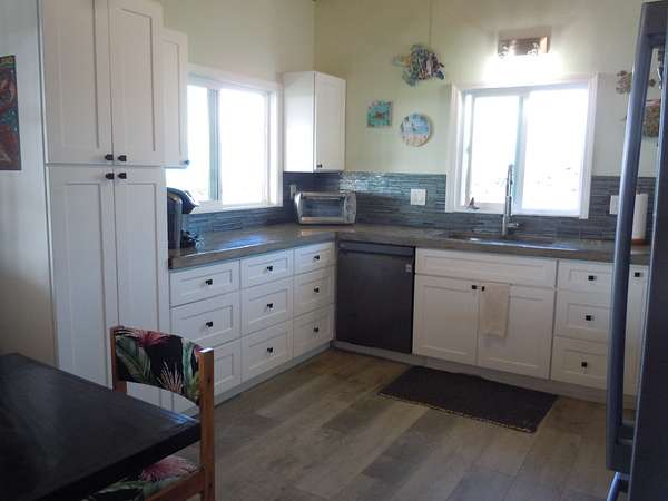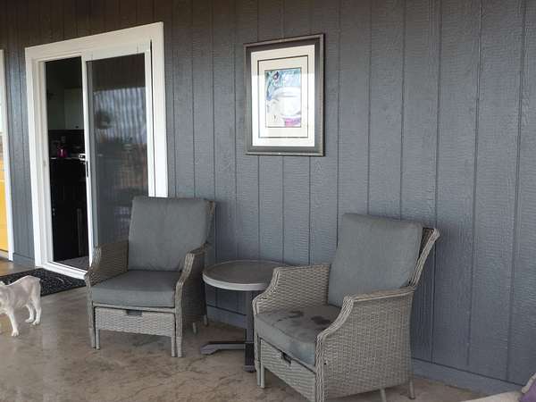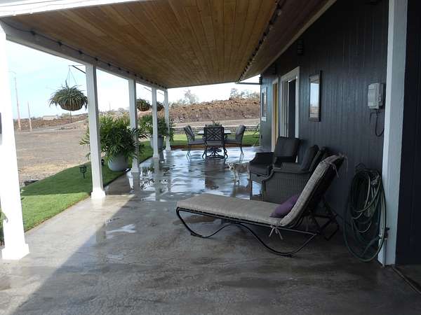 Seller Motivated. Pack your shorts, t-shirt, swimsuit and flip flops. That will be all you need to start your luxurious life in Ocean View Rancho Subdivision! This stunning TURNKEY home sits on 3 full acres, on a very desirable corner lot, and boasts views of the Pacific Ocean. So many custom features and upgrades make this a must see. Have coffee every morning on the spacious lanai while enjoying coastline views. This 3b/2b has high ceilings and vinyl flooring throughout. The kitchen has plenty of custom cabinetry, stainless appliances, with concrete countertops. The attention to details is evident throughout the entire property. The lot has been nicely cleared and a concrete driveway leads all the way up to the home. There is even a green space for pets. The double carport has plenty of space for two vehicles. A storage is attached to the back of the carport. A short drive down the Road to the Sea leads straight to the shoreline. Manuka Natural Area Reserve is very close to Ocean View. The town center with many conveniences , including restaurants, grocery stores and service stations is a 5 minute drive away . Electric bill average is $80 a month. Property taxes are $130 a month.