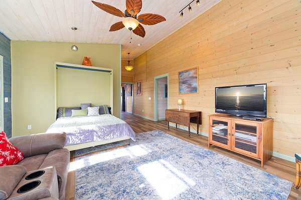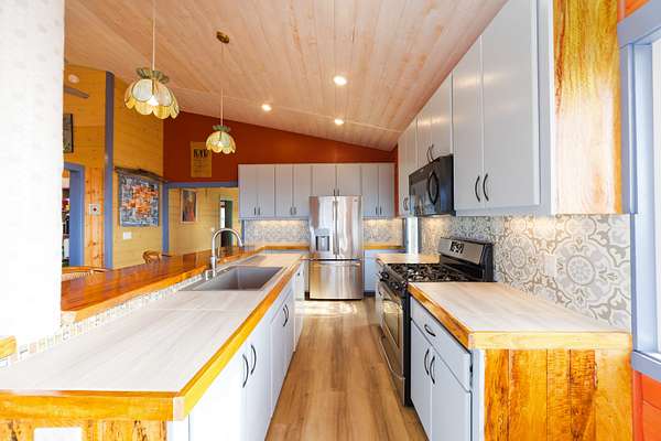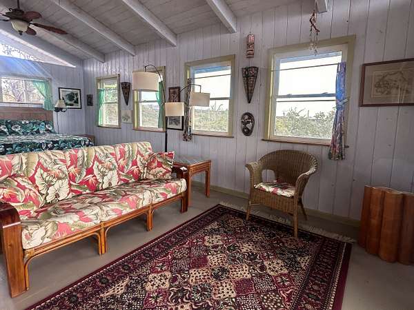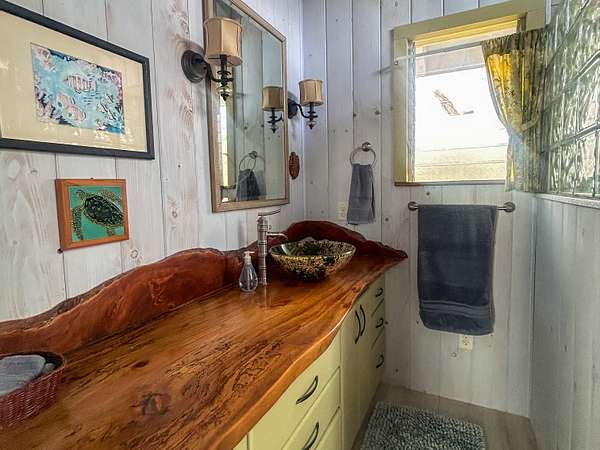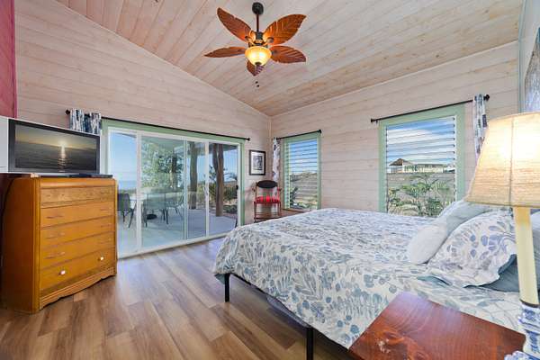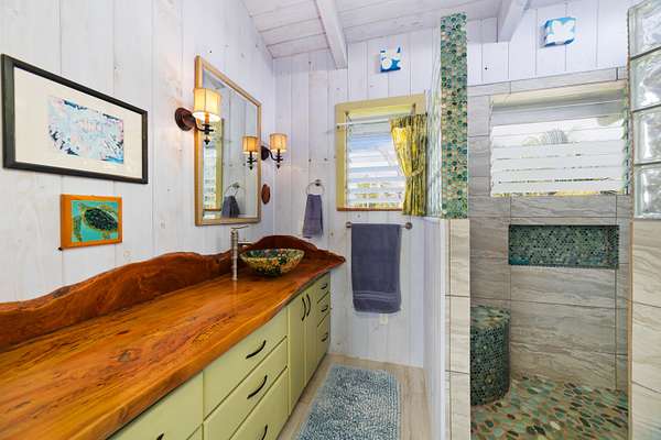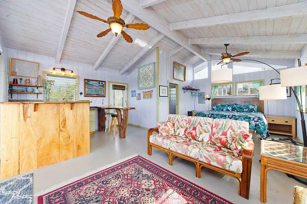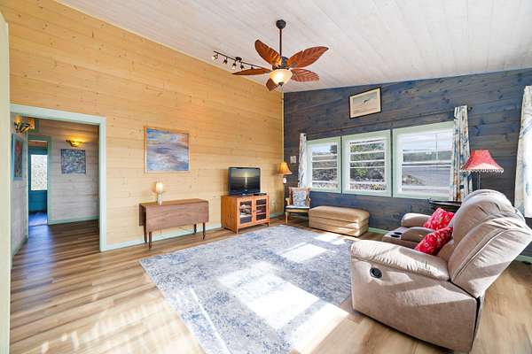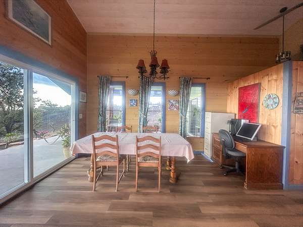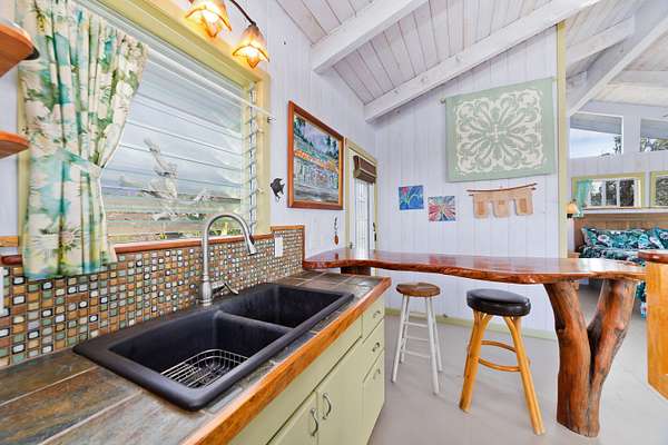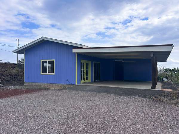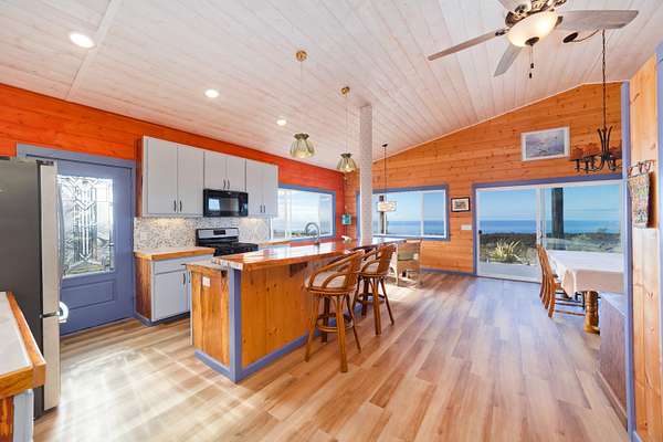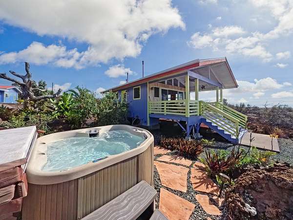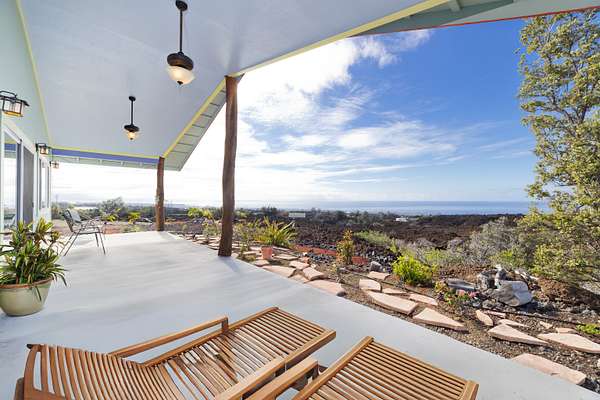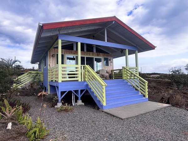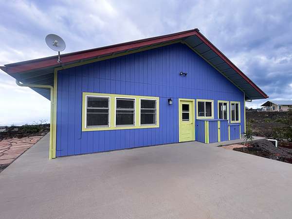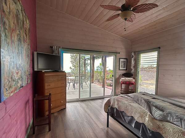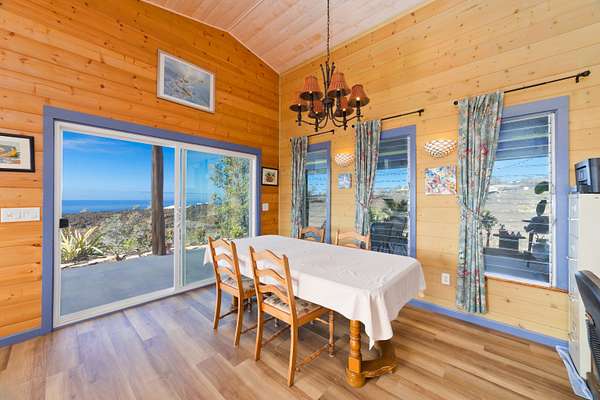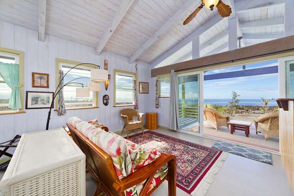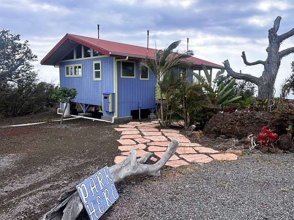 This three-acre Hawaiian retreat didn't happen by accident - it was created piece by piece, with respect for the land and the lifestyle it offers. From the moment you enter, the view pulls toward the ocean and Ka Lae (South Point.) At night, without city lights, the sky turns into a planetarium - stars, moonrise, and constellations on full display. The owners approached the land with care rather than clearing it flat. As they carved out space for the homes, they intentionally preserved dramatic lava rock formations, layered flows, natural bowls, and mature ohia trees. The result feels less like development and more like a private park - a place where tropical landscaping, palms, fruit trees, and botanical color wrap around the raw geology of Kau. A circular gravel driveway guides you through it, one viewpoint at a time. The property holds three fully permitted dwellings, offering flexibility for guests, long-term living, or rental income. Two dwellings include covered lanais, and in total the property offers approximately 2,684 sq. ft. of interior living and about 1,356 sq. ft. of protected outdoor space, encouraging life outdoors as much as indoors. Inside the main home, the owners continued the theme of intention - soaring ceilings, custom woodwork, tongue-and-groove walls, vessel sinks, glass-block showers, and standout tile work. Local hardwoods - mango, monkeypod, lychee, and avocado - were crafted into counters, vanities, shelving, and trim, grounding the home in local character. The kitchen is anchored by a 9-foot live-edge mango bar inlaid with seashells and ocean sand. Windows on three sides track sunrise to sunset. And when you want to explore beyond your gate, Punaluu Black Sand Beach, sea turtles, fishing spots, coastal views, and the famous Punaluu Bake Shop are just a drive away. A property shaped with intention - honoring what was here, while creating a quiet life rooted in Hawaii.
