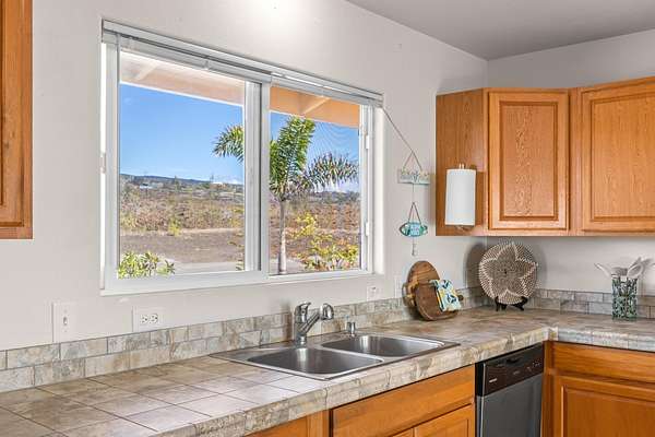 Unbelievable OCEAN VIEWS of coastline! Home is 3 acres and "King of the Hill" where you enjoy sunsets, cocktails and bbq with family and friends. Make this your get away home, second-vacation home or primary home! Open concept home with 3 bedroom and 2 bathroom. Part of the garage has been converted into an enclosed room with a closet -- use as a hobby room or extra spare bedroom. Has new stove, dishwasher, washer and dryer. Installed new irrigation system. Enjoy the affordable and country life to start your island living in Hawaii! Owner built an unpermitted HUGE storage for $30,000 -- use for parking, park your boat or work man shop. Also a green house for sustainable living! Ocean View Community is becoming to be an established burgeoning community! It has food market, ACE Hardware and food venues for this growing community.