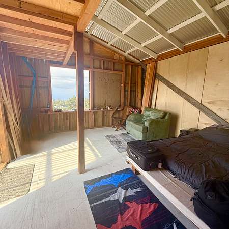 Discover the AMAZING potential of this CHARMING cabin in Hawaiian Ocean View Estates, situated on TWO full acres. Enjoy the peaceful feel of ocean breezes while taking in the Sunset and Ocean views right from the front porch. The existing 14x16 main room also includes a 4x16 loft, perfect for storage, with ample room to expand. This property offers flexibility and future potential. Since the sale includes TWO acres with TWO separate TMKS (3-9-2-19-15 & 3-9-2-19-16), one could conveniently live in the cabin while building a dream home, guest house or investment property on the other acre. The cabin also features a small water tank already in place, a graded driveway coming all the way up from the road, with entry gate for easy entry & access, and overhead power available at the street. Conveniently located just a mile and a half up from Hwy 11. Ocean View town centre is a short drive away with its grocery stores, convenience stores, post office and multiple restaurants to enjoy. The Kahuku unit of Volcanoes National Park is also nearby. This is a rare opportunity to own TWO adjacent acres with an ocean view, where building has already begun and there's plenty of room to grow!