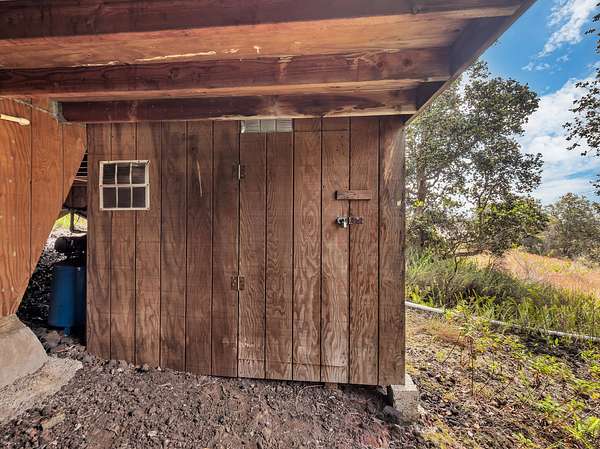 Est $750/moThis One-acre parcel located in Hawaiian Ocean View Estates, offers a thoughtfully designed unpermitted one-bedroom structure with a separate 10x10 shed perfect for off grid living while planning to build a permanent house.. The property is equipped with a 5,000-gallon catchment tank and offers a beautiful front lanai with expansive panoramic views, where both ocean sunrises and sunsets can be enjoyed. The land has been well considered, providing a peaceful setting and excellent potential for future development or improvement. MLS# 727488 Infront of this lot is also Listed.
