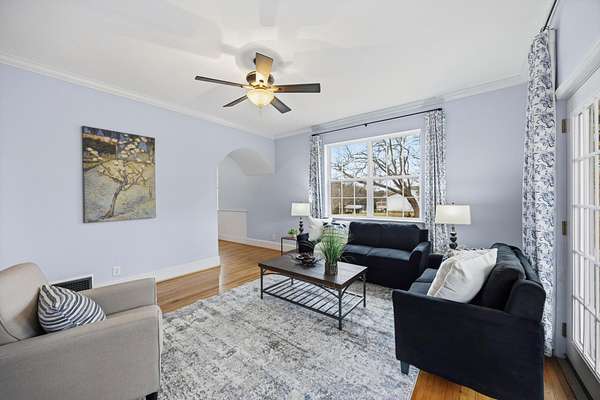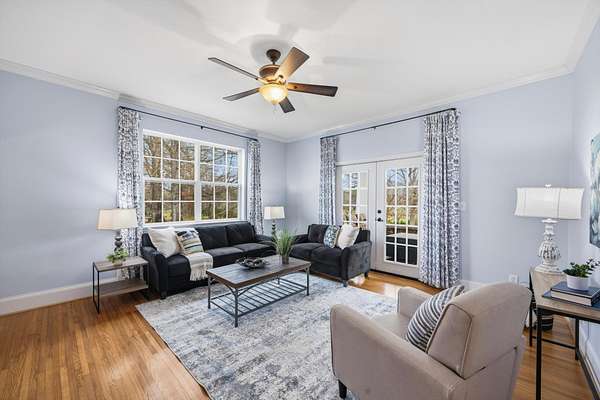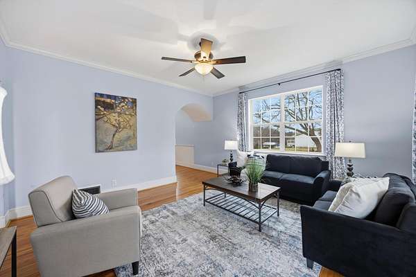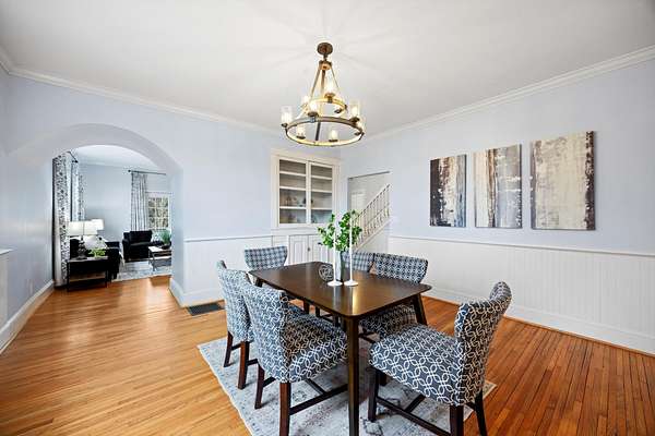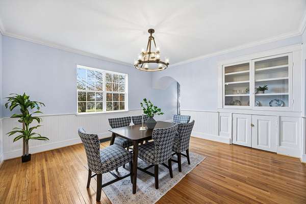 Inside, historic character shines through 10-foot ceilings, hardwood floors, French doors, and a built-in china cabinet in the dining room. The home's layout flows effortlessly, ideal for hosting holiday parties, and large gatherings of friends and family. Outside, the expansive yard and shared easements have been perfect for raising kids: football, volleyball, trampoline fun all at the same time, and evenings gathered around the fire pit for marshmallow roasting.