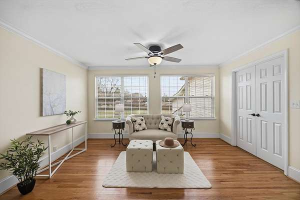 - Bookcases, Built-In Features, Ceiling Fan(s), Entrance Foyer, High Ceilings, Walk-In Closet(s)