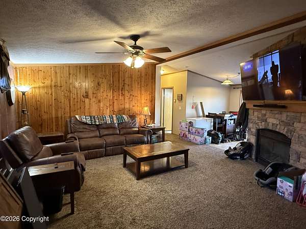 Escape to the quiet life on nearly 6 acres of flat usable land. This 3 bed 2 bath home is the perfect home for someone who needs space to creat, work or store your lawn equipment and toys. The property has thee large sheds. One has electric ran to it, the other two have electric in them and just need hooked up to power. In the home you will find a spacious kitchen with stainless steel appliances and ample storage. Relax in your comfortable living room which features a fireplace with a rock wall. Primary bedroom features double vanity bathroom. With plenty of room for livestock, gardening or equipment storage, this is more than a home - it is a LIFESTYLE. Call Angie Clark with Lifestyle Real Estate at 307.689.2055 for any questions.