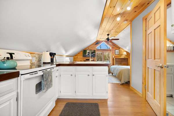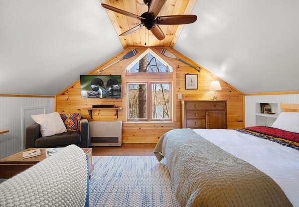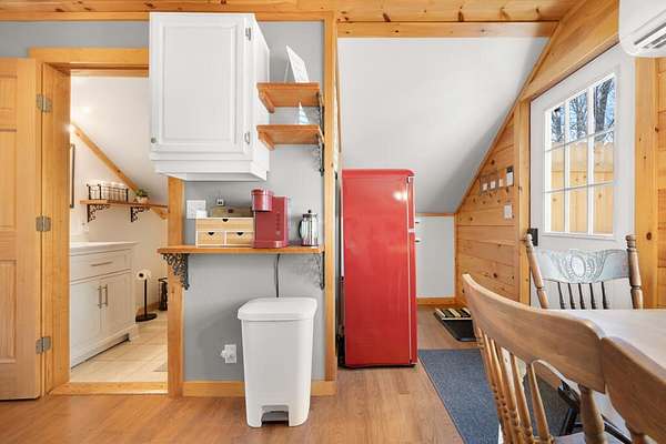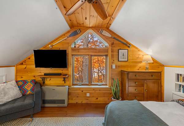 Welcome to Maple Cove Camp, a charming lakefront retreat perched above the shoreline of Toddy Pond. Set on 3.56 acres with over 500 feet of water frontage, this rare offering captures the beauty and tranquility of Maine waterfront living, with plenty of space to spread out. Whether you're seeking a proven rental investment, a cozy home, a seasonal getaway, or the perfect place to build your dream home, with a built-in place to stay during construction, this versatile property presents a unique opportunity to do it all! The turn-key setup includes a thoughtfully designed 24x24 Cape-style 1-bedroom, 1-bath cottage situated above a two-car garage, blending style and efficiency. The open-concept living space, nestled among the treetops, seamlessly integrates the kitchen, living, and sleeping areas while taking in views over picturesque Maple Cove. The interior has been well cared for and benefits from recent updates, along with a selection of furnishings that will convey with the sale. The layout maximizes space while maintaining a functional design with ample storage, making it well-suited for year-round enjoyment. Beyond its current use as a seasonal rental, the property offers excellent flexibility. The existing well and septic system are oversized to support additional living space, allowing for future expansion while maintaining the cottage as a successful income-producing rental. Ideally located within reach of Acadia National Park, this area serves as a true gateway to the outdoors, with access to numerous hiking trails, scenic waterways, and year-round recreation. Nearby, the Great Pond Mountain Wildlands provides expansive conservation land and miles of trails to explore. Whether you're looking to invest, build, or simply enjoy a peaceful waterfront escape, this property delivers a rare combination of flexibility, natural beauty, and long-term potential.