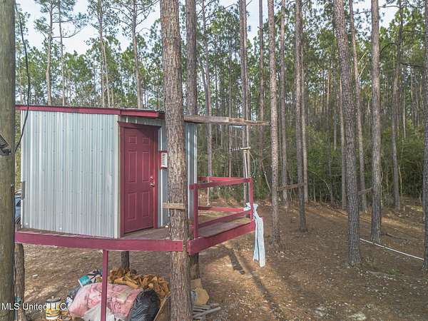 Secluded on 3 acres in Stone County, Mississippi, this all-metal residence sits on land bordered by federally protected lands on multiple sides, offering unmatched privacy. The shell is built entirely of steel for durability, fire resistance, and minimal maintenance, with a modern, low-sheen interior. Featuring 2 bedrooms and 3 bathrooms, the layout centers around an open living area that invites natural light from large, energy-efficient windows. The open concept kitchen includes modern appliances, generous counter space, a functional island with sink and a large panty with plenty of shelving. The garage has two roll up doors and a half bath for convenience. A standout feature is the custom tree house, wired for electricity and perched among mature pines for a tranquil ''thinking'' space. Nearby amenities are within easy reach in Wiggins and other Stone County towns, including groceries, healthcare clinics, schools, and parks, with De Soto National Forest offering hiking, hunting (where permitted), and wildlife viewing. This property balances rugged privacy with practical access, making it ideal for nature lovers seeking a low-maintenance, secure retreat close to Mississippi's coast. Call today for your private tour!