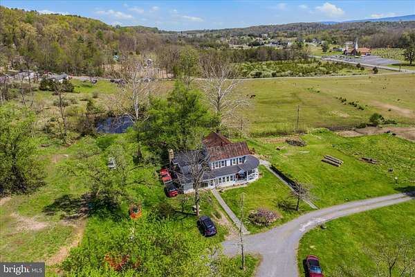 Welcome to 92 English Muffin Way-an exceptional 31+/- acre UNRESTRICTED property offering space, character, and endless potential. Featuring a picturesque pond, a barn, and a charming farmhouse ready for your personal vision, this property is a rare find. The farmhouse offers 4 bedrooms and 2 bathrooms, with a layout designed for both comfort and functionality. At its heart is the striking "stone room," a spacious family room showcasing beautiful stone walls and flooring, anchored by a cozy gas fireplace-perfect for gathering year-round. The main level also includes a generous kitchen, formal living and dining rooms, a bright sunroom, a laundry room, the primary bedroom, and a full bath. Guests can be welcomed through the traditional front foyer or enter more casually through the inviting four-seasons porch that opens into the kitchen. Upstairs, three additional bedrooms and a full bathroom are accessed via a graceful curved staircase. Hardwood flooring runs throughout much of the home, adding warmth and timeless appeal. A standout feature is the expansive front porch-an ideal spot to relax and take in the scenic views of the surrounding landscape. With no restrictions, this versatile property offers a wide range of possibilities-whether you envision a private single-family residence with room to farm, a multi-generational family compound, or the potential to subdivide and develop. The combination of acreage, natural features, and existing structures makes it a truly flexible investment. Ideally located along Route 522, this property sits just moments from Cacapon State Park, where you can enjoy hiking and biking trails, a scenic golf course, fishing, swimming, horseback riding, and year-round outdoor recreation. It's also just about 15 minutes from Berkeley Springs, a charming and historic town known for its warm mineral springs, relaxing spas, unique shops, and local dining. Whether you're seeking outdoor adventure or a vibrant small-town atmosphere, this location offers the best of both worlds. Bring your chickens, horses, and your vision for country living-there's room here for it all. Gather your family, create your dream lifestyle, and schedule your private showing today. Please note: Per the tax assessment the acreage is 29.37 however the sellers had a survey done after purchasing the property with a recorded plat that reflects 31.69 acres. Property is being sold as-is.