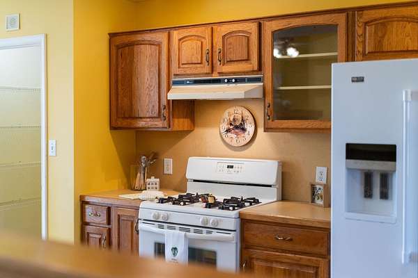 - Formica Counter, Glass Front Cabinets, Insulated Windows, Oak Cabinets, PVC Windows, Screens, Tilt Sash Windows, Vaulted/Cathedral Ceiling