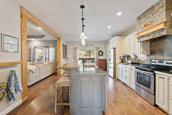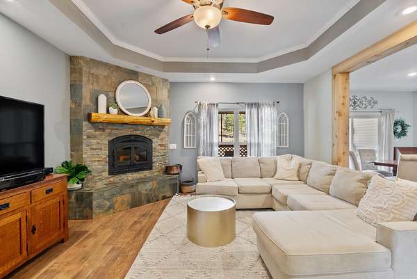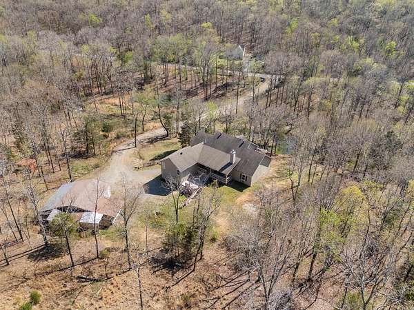 This gorgeous 5 or 6 bedroom, 3 bathroom home is a truly unique find, featuring a double split floor plan with gorgeous, wooded views from every room that will make you never want to leave. The home includes a spacious upstairs bonus room complete with a projector, movie screen, mini split, and a perfect space for a home gym. Additionally, there is a storm shelter for safety, tons of storage space, a huge laundry room, and a cozy wood-burning fireplace. Outside, is a great place to spend your days. The 24x30 shop with an overhang provides space for projects or hobbies, while a chicken coop, animal shelter areas, and cross fenced land offers plenty of room for FARM ANIMALS. After a long day, unwind by the fire pit near the pond or on one of the two oversized covered porches to enjoy the peaceful surroundings. If you’re looking for a property with right at 9 acres and that truly has it all, come see why this house should be YOURS today! AGENTS: PLEASE READ REMARKS which involved a 6 month contract.