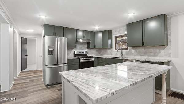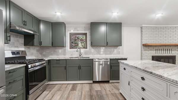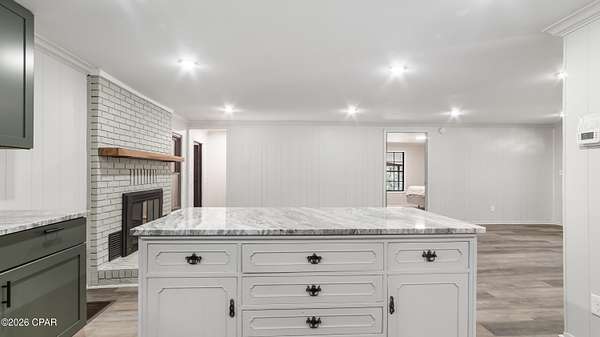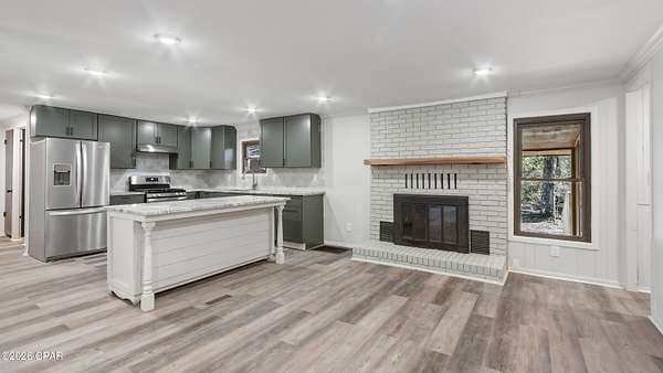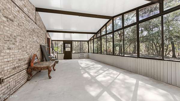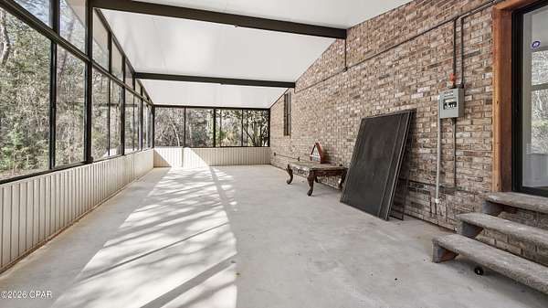 Privacy, space, and nature come together on nearly 4 acres, just a short walk from the Choctawhatchee River in this beautifully updated brick home. The home has received significant updates, including new ceilings, updated flooring, and thoughtfully renovated kitchen and bathrooms. The kitchen features newer stainless steel appliances and a spacious island with additional seating. A warm wood-burning fireplace welcomes you as you enter, while the expansive sunroom showcases large windows that flood the space with natural light and bring the outdoors in. The bedrooms are generously sized and offer excellent storage throughout. Outside, you'll find a large outbuilding with endless potential for a workshop, RV/boat storage, or hobbies, along with a covered front-yard carport. Additional features include a metal roof, private well and septic system, and natural gas. With unmatched privacy and wide-open land, this property is truly a dream for those seeking space and tranquility.