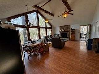 Private Acreage & If You Love Lake Blue Ridge and Lakeside Community Living, Now Is The Time To See This Amazing Cabin & Make An Offer! This 2-3/3 HOME sits on 2.36 Acres with Room for more building. Extra Nice Separate 3 Car Garage, plus big carport with power at entrance of property, Fenced In Area For The Pups. Almost Lakeside Living. Conveniently located just across the street from Lake Blue Ridge and all the fun. "EXCUSE The Boxes, Estate Sellers Are In The Middle Of Moving." This home has been renovated with additional New living space added to both main level bedrooms giving each it's own added sitting room privacy opening to the amazing deck traveling halfway around the house. Large Walkin closets give room for lots of extras. Newly finished fun game room in basement complete with a new pool table, built-in shelves & Office or 3rd bedroom with Walkin closet and bath. Easy walk or drive to 2 Lake Access Points For Kayaks, Swimming, Fishing and FUN! Sandy Bottoms Beach is only minutes away along the lake through wilderness. Metal roof 9 yrs old, new gutter system with leafguards, termite bond, HVAC 2017, water heater 2025, whole house generator!