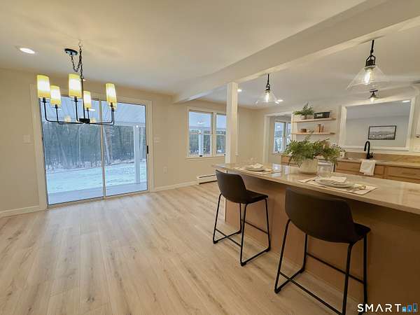 Est $2,160/moWelcome to this secluded, 2 bedroom, beautifully remodeled ranch-style home located on 3 acres. As you enter the private driveway, located to the right is a large barn made for great storage. The home exterior offers new siding, roof and garage doors. As you're welcomed into the home you'll notice new flooring and fixtures throughout. The custom two-toned kitchen has classic brass finishes, open shelving, stainless steel appliances, and quartz countertops. 2 bedrooms and a fully remodeled bathroom with a custom tiled shower are right around the corner for convenient first floor living. A large 2 car garage with basement access adds to the ample storage. This cozy, yet stunning home won't last long. Schedule your showing today!