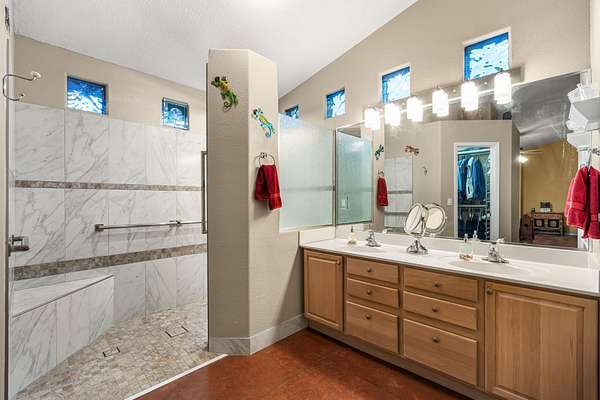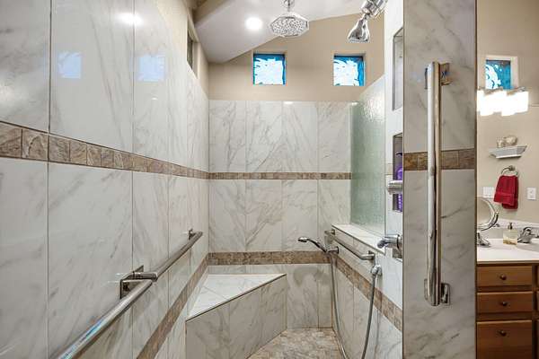 - Attic, Breakfast Bar, Ceiling Fans, Dual Sinks, High Ceilings, Kitchen Island, Main Level Primary, Multiple Living Areas, Pantry, Separate Formal Dining Room, Separate Shower, Shower Only, Walk In Closets
