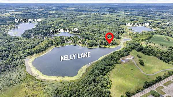 Est $654/moWow 250+ feet of Kelly Lake frontage! Connects to four lakes! Buildable lot located at the end of the cul-de-sac. Perfect fit for a home with a walkout basement. Spectacular lake views from multiple angles! Great up north feel with mature trees allows you to connect with nature, but stay close to conveniences in the ''Irish Hills'' area. Kayaks, Fisherman and Nature Lover Getaway!