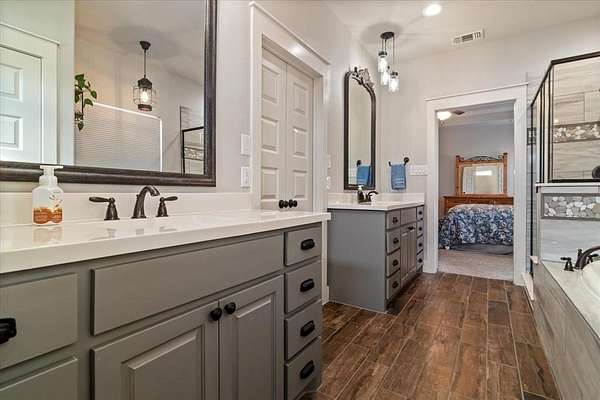 What else could you be looking for Beautiful home in the country on acre and half, great pool, fiber internet and no HOA. This incredibly maintained home has open floor plan, high ceilings gorgeous floors with carpet only in bedrooms. Large stunning kitchen with island, stainless farm sink and gas range. Living has impressive fireplace with raised hearth. Master is a great size and bath has separate shower and separate vanities with spacious walk in closet. Two more bedrooms down share a full bath and both have walk in closets. The 4th bedroom is upstairs with its own full bath for that your favorite child. If 4th bedroom is not needed it would make an outstanding game room. This bedroom is only room upstairs everything else is downstairs. Covered patio is 17x13. Pool is perfect size for family fun in the hot days of summer. This is a wonderful community with neighbors you will want to know and call your friend.