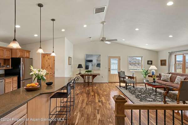 Valley Setting. Water. 37 Acres of Possibility. Set in a pristine valley with a year-round stream and 37 acres of scenic Colorado landscape, this hillside retreat offers privacy, natural beauty, and exceptional potential. The thoughtfully designed 2,480 sq. ft. residence features acacia wood floors, 3 bedrooms, 2.5 bathrooms, and energy-efficient geothermal heating and cooling for year-round comfort and sustainability. Whether envisioned as a private mountain sanctuary, an opportunity to build an additional residence, or to pursue subdivision through Garfield County's exemption process, this property offers remarkable versatility. Private, yet connected--a scenic drive 9 miles north of Highway 82, minutes to Roaring Fork amenities, with seasonal access over Cottonwood Pass to Gypsum and I-70 corridor amenities.
