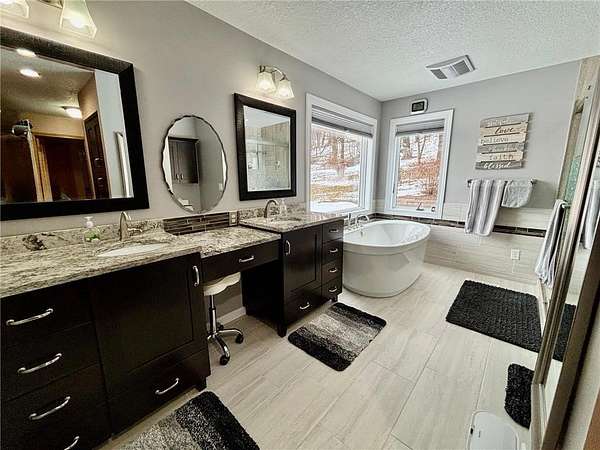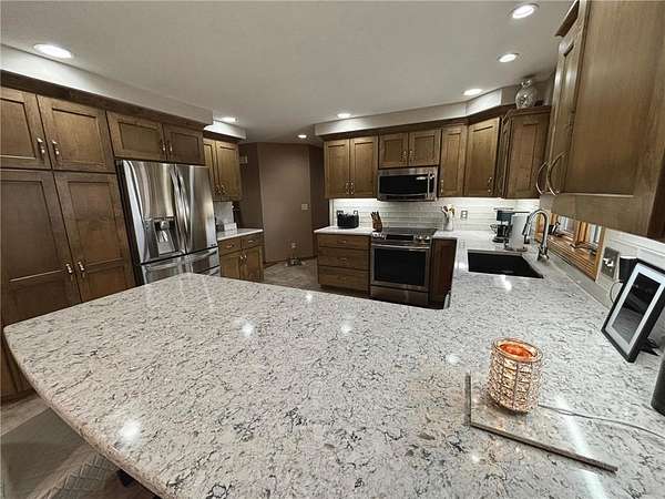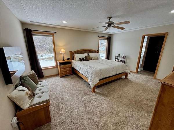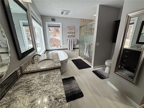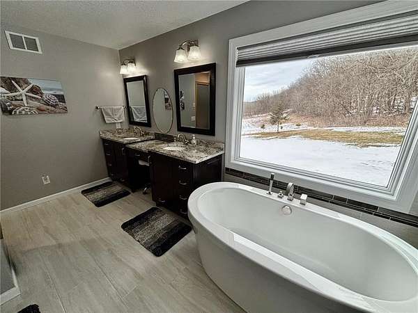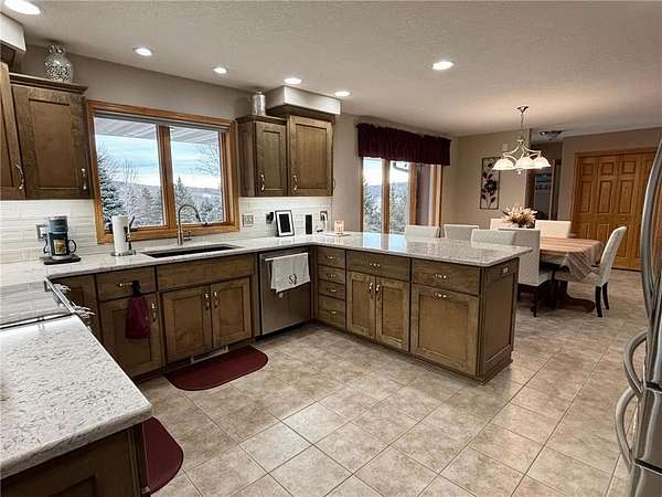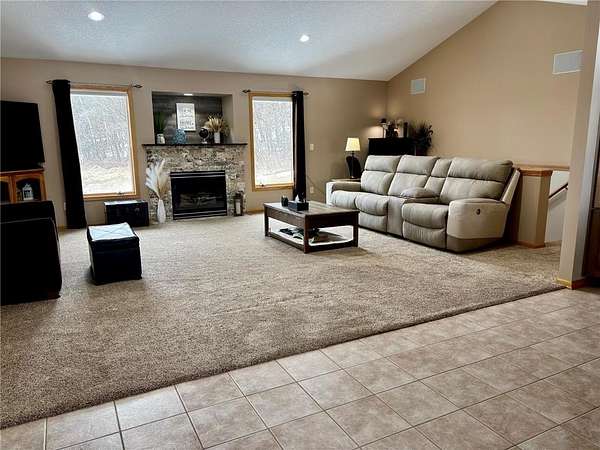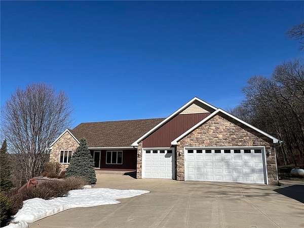 Exceptional custom-built home set on 2.3 beautiful acres with nearly 4,000 finished square feet with direct access to the Douglas State Trail. This thoughtfully designed property features 5 spacious bedrooms and 3 updated bathrooms, including a luxurious primary en-suite with soaking tub and separate shower. The remodeled kitchen showcases stone countertops, refinished custom cabinetry, and updated appliances, creating a welcoming space for everyday living and entertaining. Comfortable gathering areas with two gas fireplaces and a fully finished walkout lower level with wet bar, workout room, and generous storage provide flexible living space for a variety of lifestyles. The heated 2.5-car attached garage with hot and cold water and stair access to the basement, along with an additional 3-car detached garage, offers exceptional space for vehicles, hobbies, and storage. Pre-inspected with updated mechanicals and appliances, along with a Custom Alarm system. This well-maintained property combines space, privacy, and recreation in a highly desirable location.
