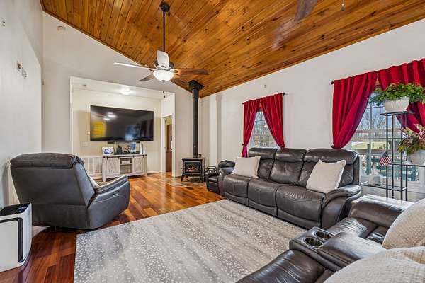 Stunning home + shop + acreage+ finished basement suite +hunting +Lake=SCORE! This beautiful 3BR/3BA custom home sits on 5.06± unrestricted acres close to Center Hill Lake. Main level showcases vaulted wood ceilings in both the living room (w/ a fireplace) and kitchen, plus hardwood and tile flooring throughout. Enjoy the spacious kitchen w/granite countertops, gas stove, backsplash soft close cabinets & stainless appliances. Split bedroom layout includes a primary suite w/ jetted tub, double sinks, walk in shower & a huge walk-in closet. You will love the spacious laundry room w/ utility sink and there is an office/flex room just off the primary bedroom. The fully finished walk out basement features a full kitchen, living room, full bath & 2 flex rooms perfect for extended family, guest or multi generational living. Additional highlights include a tankless water heater, paved driveway, covered front porch, covered back deck that spans the home, hot tub, and a basement garage. Need extra workspace or storage? You’ll appreciate the detached 30x40 garage as well. Oversized gravel pad prior to driveway offers parking for equipment and extra vehicles Big-ticket updates already done: 1 year old metal roof & HVAC hybrid heat system w/ antimicrobial UV light. Located in DeKalb Co & zoned for Baxter schools. Property is listed 2 different ways in MLS. Portion of map/parcel 032 003.11