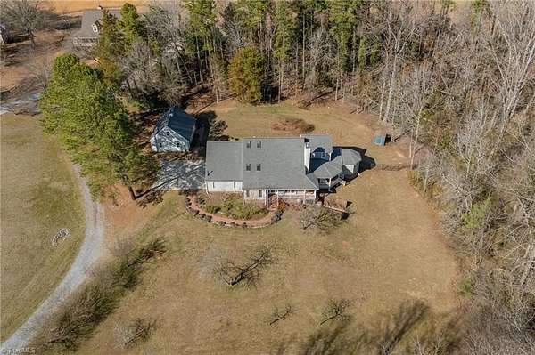 Welcome HOME! This property checks all the boxes!! Over 14 acres, large hay field, fenced in pasture, barn, large pond, basement, ample square footage, screened in back porch, wrap around front porch, detached 2 car garage with workshop, wine cellar with 700+ bottle capacity, high end finishes throughout, including cherry wood cabinetry, granite countertops, walk in pantry and MORE! Horses and other livestock welcome! Don't let this one slip through your fingers! Convenient to all the Triad has to offer and just minutes outside of Winston Salem! Located in Wallburg Township, Wallburg has a public park, picnic shelter with pickle ball courts! Schedule your showing today! Possible subdivide/development/second residence opportunities for back pasture area measuring roughly 4+ Acres.