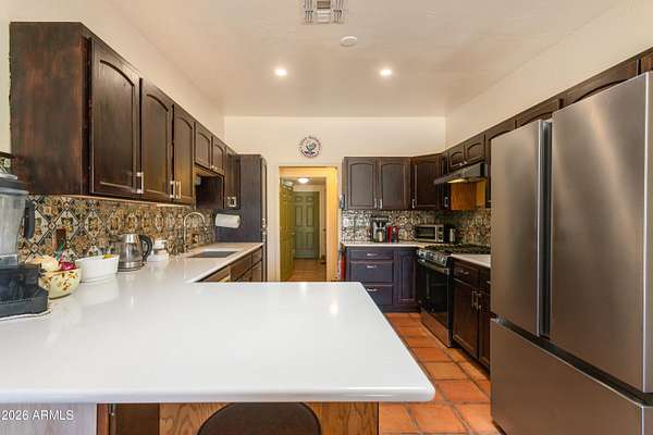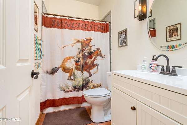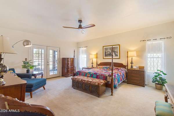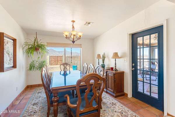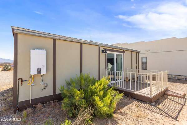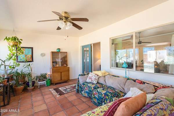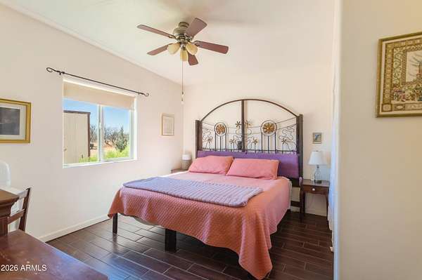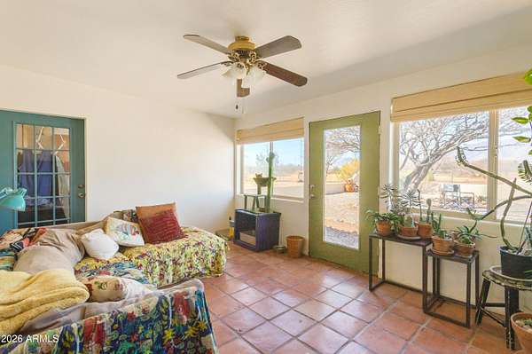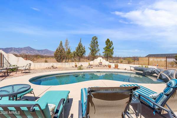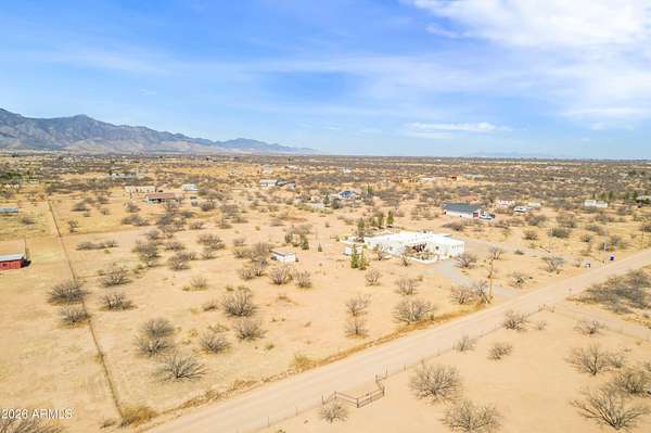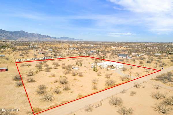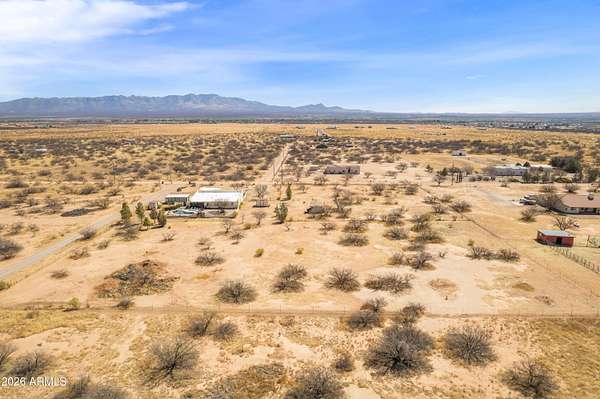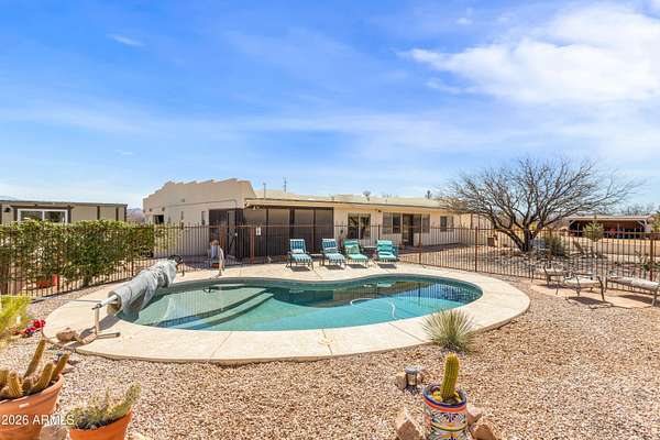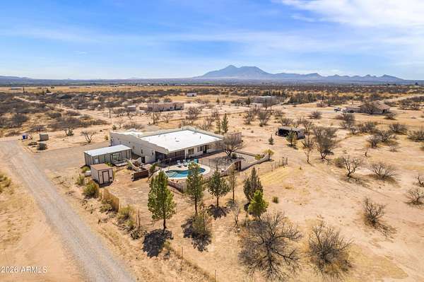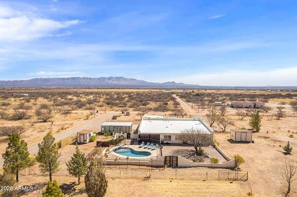 Panoramic views! Pool! No HOA. 4+ acres fully fenced. Separate 500 sq ft casita! This well maintained 3 b 2 b 2450 sq ft. home has original saltillo tile, HUGE main ensuite w/ lanai, formal breakfast nook & dining room. The DR French doors lead to a bonus room & living room that can easily be used as a mother-in-law suite. Kitchen has newer appliances. Casita remodeled '24 has tankless H20 & mini split. 2 1/2 garage w/ tons of storage for motorcycles, gold carts, e-bikes, and toys. Huge covered front porch w/ sweeping desert views to enjoy the sunsets & AZ dark skies. 3 out-buildings: 10 x 16 loafing shed, 10 x 12 tack room and an 8 x 10 garden shed. Stunning backyard views poolside w/ secure custom pool fence. Roof recoated '25. Exterior paint '26. Entertainers' paradise! MUST SEE!