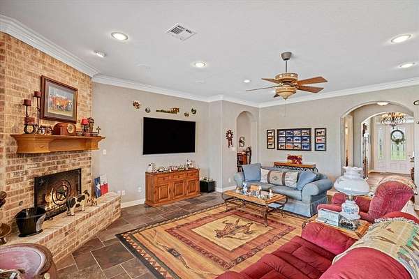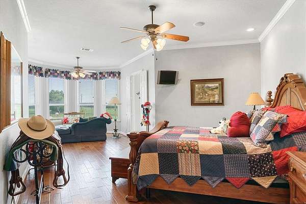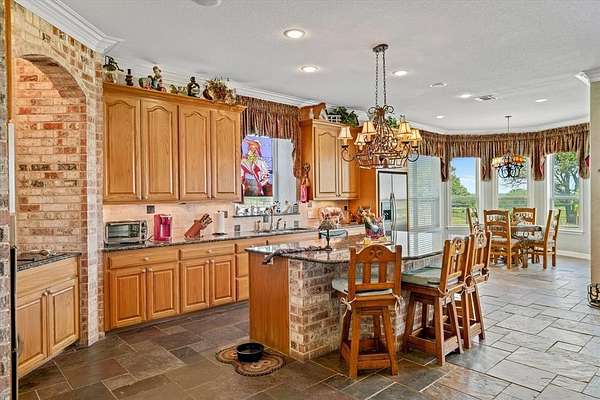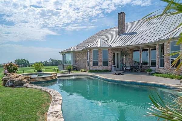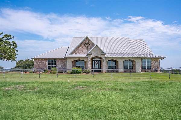 Welcome to this exceptional 74.92-acre ranch, offering a rare blend of luxury living, working ranch facilities, and wide-open Texas beauty. Perfectly designed for comfort and functionality, this property features a stunning hilltop owner's estate, a secondary home, extensive improvements, and ample acreage for cattle, recreation, or development. The centerpiece is the 3,604 sq. ft. east-facing estate home, thoughtfully designed with 3 bedrooms, 4 bathrooms, and a guest wing to provide privacy for family and visitors alike. A dedicated office makes working from home convenient, while the well-appointed kitchen is ideal for entertaining or preparing meals. Constructed with enduring quality--brick and stone exterior, metal roof, and timeless finishes--the home is built to last. Additional features include a storm shelter, a cozy fireplace with both wood-burning and gas options, and multiple spaces to gather and relax. Facing west, a sparkling pool with attached spa captures panoramic sunset views, creating the perfect place to unwind at day's end. A second, residence on the property; 2br, 2ba; offers flexibility as a guest house, ranch hand's home, or rental. Multiple outbuildings, including equipment storage and workshop facilities, provide ample space for ranch operations, or future improvements. Designed with livestock in mind, the ranch includes working cattle facilities. Fencing, and cross-fencing, ensures pastures are ready for rotational grazing and livestock management. The rolling landscape provides a balance of functionality and beauty, offering productive land and scenic vistas. Whether you are seeking a premier working cattle operation, a private retreat, or a legacy property to pass down, this 156-acre ranch delivers. With its combination of an elegant estate home, supporting residence, ranch infrastructure, and unmatched Texas scenery, this property is ready to meet the needs of the modern rancher while offering the comfort of country living at its finest.