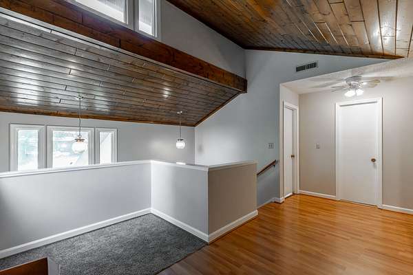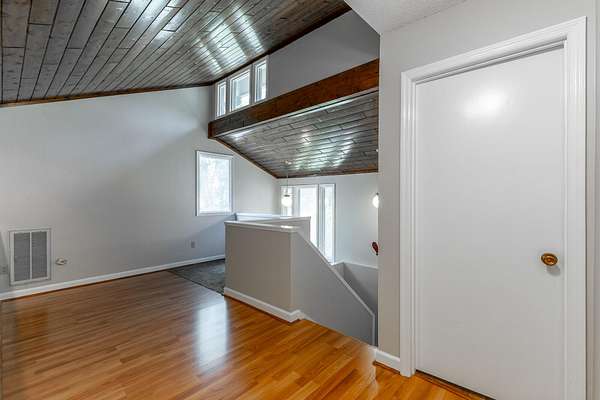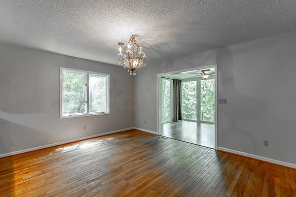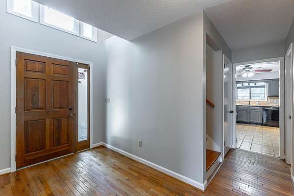 EXCLUSIVE FINANCING INCENTIVE AVAILABLE when Buyers use Seller's preferred lender. Details available upon request Welcome to 9208 Magic Mountain, a thoughtfully designed contemporary home nestled in the heart of the prestigious Mountain Shadows neighborhood--one of East Brainerd's most sought-after communities, celebrated for its spacious lots, family-friendly amenities, and vibrant lifestyle. Here, neighbors gather at the tennis courts, the community pool, or the clubhouse, all just moments from your front door. Set on a private, wooded lot, this distinctive modern home blends classic design with today's most desired comforts. Freshly painted and full of character, the residence welcomes you with a large front porch and timeless stone and wood siding. Step inside to discover solid hardwood floors and a thoughtfully placed coat closet in the entryway, setting a warm and functional tone. To your right, the primary suite is a serene retreat, offering laminate flooring, custom walk-in closets with built-in shelving, and a beautifully updated bath featuring tile floors, a walk-in shower, and soaking tub. The white shiplap ceiling, his-and-hers vanities, and private access to the sunroom and balcony create a spa-like atmosphere with a private view of the secluded backyard. The heart of the home boasts vaulted wood-paneled ceilings, an open-concept living and dining space, and a kitchen designed for both beauty and function. You'll find gray cabinetry, granite countertops, a coffee bar, and tile flooring, plus a light-filled bonus room with floor-to-ceiling windows--perfect for morning coffee or an afternoon read. Ideal for busy households, the spacious laundry room sits between the kitchen and attached garage, and a convenient half bath serves the main level. Upstairs, you'll find additional bedrooms, a versatile bonus space ideal for a playroom, office, or dream closet, and a beautifully appointed second bath with a double vanity and separate shower and toilet area.