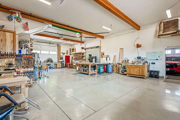 Rare opportunity! Just minutes from town, this fully custom barndominium-style home offers the perfect blend of comfort, functionality, and versatility. Featuring 2,750 sqft of thoughtfully designed living space, this private 3 bedroom, 2.5 bath residence is complemented by an attached 2,750 sqft shop and oversized 4 car garage - complete with its own bathroom and built in heater- ideal for work, storage, hobbies, and entertaining. Crafted with quality and efficiency in mind, the home includes 6' extra insulated walls, a whole house water filtration system, and a spacious kitchen with leathered granite countertops, custom hickory cabinetry and ample room to gather. Set on 5 acres with breathtaking mountain views, this property is perfect for those seeking both comfort and quality. Bring your toys, horses and livestock- there's room for it all! Enjoy 9 raised garden beds and unwind in the hot tub as you take in the views. A one-of-a-kind retreat you won't want to miss!