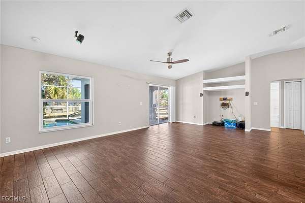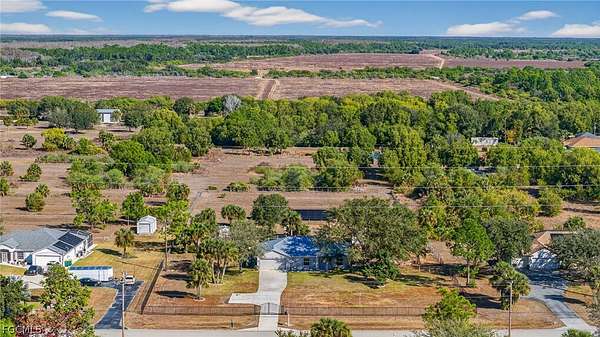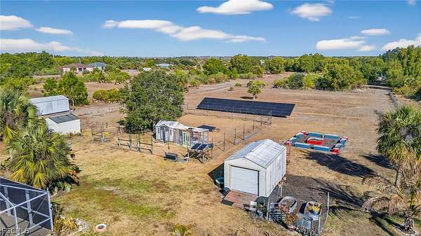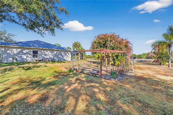 Beautiful 3 Bedroom Plus a Den, 2 Bathroom POOL HOME sitting on 2.73 Acres, located in the heart of Golden Gate Estates, FENCED and GATED with Keypad Entry System. This concrete block home offers the perfect blend of country freedom and modern luxury. Major Upgrades: Metal Roof (2018), New HVAC (2023), New Water Heater (2019) New pool pump, New Carpet, Refrigerator, Microwave, Fence, Gate and Impact Windows. The property is a sustainable oasis with OWNED Solar Panels resulting in a $22 +or- per month electric power bill for most months! YES THIS IS CORRECT, AND Very RARE "THE SELLER PAID OFF THE 48 PANEL SOLAR PANEL BALANCE" This would be almost like living "OFF GRID" because this home has, its own SEPTIC SYSTEM, WELL WATER, HUGE CHICKEN COOP AREA (with a separate solar set up), and a LARGE GARDEN AREA towards the back of the property, FULLY CLEARED and USABLE LOT. The interior features a split-bedroom layout, granite counters, and volume ceilings, a formal dining room, extra Den that can be used as another bedroom/office or home gym, a primary suite with a walk-in closet, en-suite bathroom with a soaking tub and walk-in shower and the living room area is equipped with a surround sound system. Outside, the fully fenced lot includes a security gate, an in-ground pool with screened pool cage, under the roof lanai area. No HOA restrictions means plenty of room for your "toys." (BOAT, RV, ATV) Enjoy peace and quiet and still just a short drive to the Seminole Casino, shopping, dining and beautiful Naples beaches.