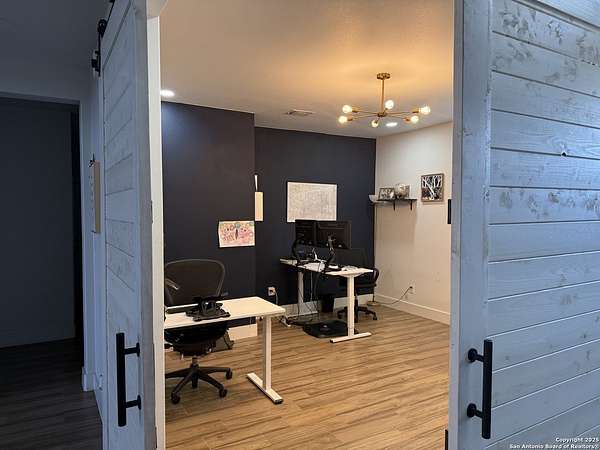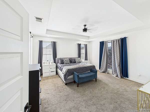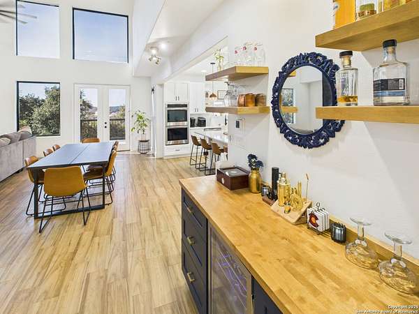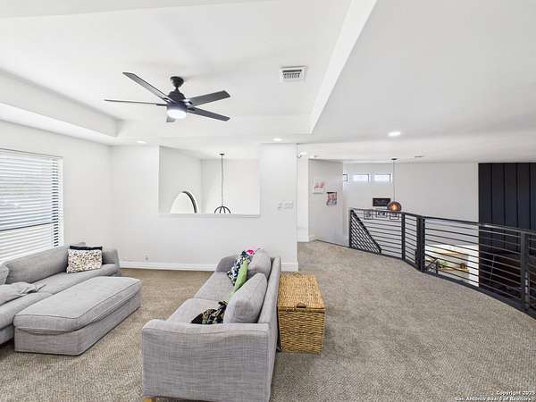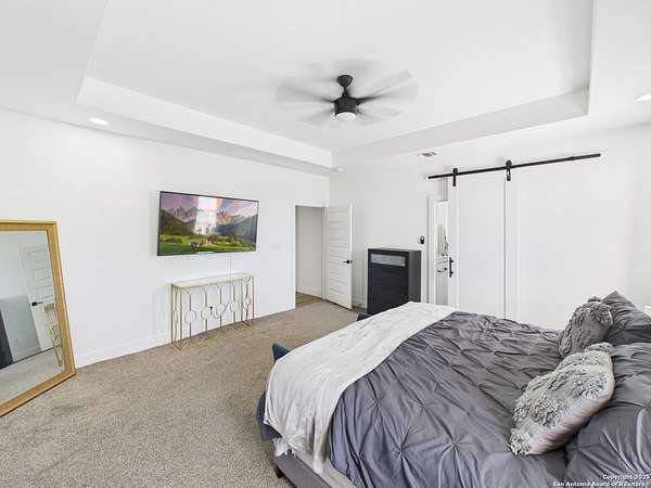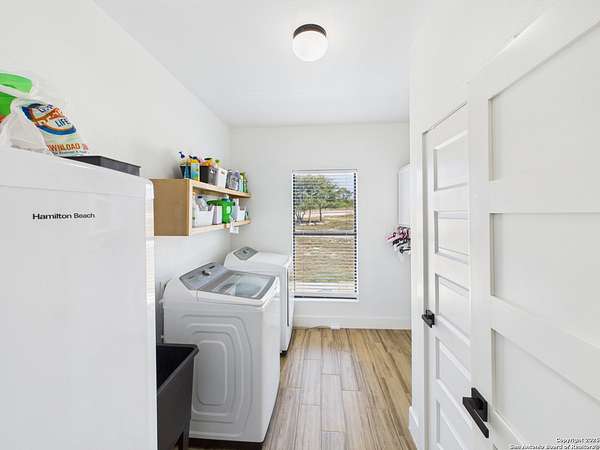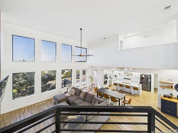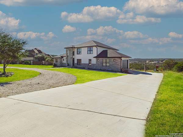 Discover luxury living in the heart of the Texas Hill Country. Built in 2022, this custom-designed home sits on 2.3 acres and backs directly to your own private natural preserve-offering privacy, tranquility, and stunning views year-round. Step inside to an expansive open-concept layout featuring a seamless flow between the living room, dining room, and gourmet kitchen. The kitchen showcases an oversized island with elegant quartz countertops, perfect for entertaining. Floor-to-ceiling windows and soaring ceilings in the living area flood the home with natural light, creating a bright and inviting atmosphere from sunrise to sunset. The privately situated main-level primary suite includes a spa-inspired bathroom with a rainfall walk-in shower and luxurious whirlpool tub. Also on the main level is a guest suite with its own full bath and private deck access-ideal for visitors. A dedicated office/study with custom 8-foot double barn doors offers the flexibility to serve as a fifth bedroom. Upstairs, you'll find two spacious bedrooms connected by a Jack-and-Jill bathroom, along with a loft-style family/playroom featuring a charming Juliet balcony overlooking the main living area. Enjoy peaceful mornings or unforgettable gatherings on the main-level deck, perfectly positioned for both sunrise and sunset views. Guests can conveniently access the deck bathroom without entering the main living space. A rare highlight of this home is the fully finished walkout basement-1,083 sq ft of limitless potential. Whether you envision a media room, game room, private gym, additional guest suite, or a mother-in-law suite, this space is ready to be customized to your needs. It includes a half bath and an additional private room for added flexibility. Additional features include a spacious two-car garage with room for a water softener and plenty of storage. Located in the desirable Laurel Canyon Ranch community, residents enjoy scenic trails, a serene fishing pond, plentiful wildlife, and unparalleled Hill Country beauty. Don't miss your chance to own this truly one-of-a-kind property-your dream home awaits.