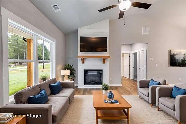Construction is underway! Do not miss your chance to own a SPACIOUS RANCH on 4 PRIVATE ACRES with plenty of space and NO HOA! This gorgeous step-less RANCH with an open-concept design features a spacious family room with vaulted ceilings and a custom-built shiplap fireplace. The gourmet kitchen is equipped with GRANITE countertops, UPGRADED SOFT-CLOSE SHAKER CABINETS, a FARMHOUSE SINK, a large PANTRY & stainless steel appliances. Perfect for entertaining! The large master suite offers a private retreat with a beautiful ensuite bathroom featuring a double vanity, custom TILE SHOWER & a generous walk-in closet. Two generously sized secondary bedrooms offer ample storage space with large closets, complemented by a stylish full bathroom. Step outside to the COVERED back patio for your morning coffee, or relax on the rocking chair front porch. The attached CARPORT is an added convenience for all of your outdoor needs. Standard features include beautiful luxury LVP in the kitchen, living room, entry, and baths; plush carpeting in the bedrooms; and high-quality finishes throughout. Enjoy the freedom of a PRIVATE LOT with no HOA restrictions, combining tranquility with convenient access. Not quite the right floor plan? We have other options & lots available! Be sure to inquire about our incentives, utilizing our preferred lenders. Interior photos & exterior completed photos are not of the actual home but represent this plan. (Lot and drone pictures are of the lot.) Minutes to Cedartown, Rockmart, Aragon, Silver Creek, and Rome. Don't miss this rare opportunity to create your dream home in a tranquil setting