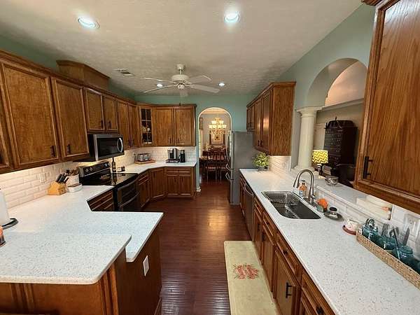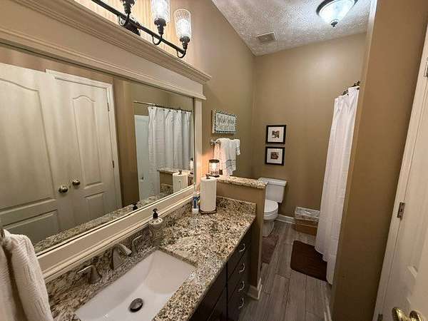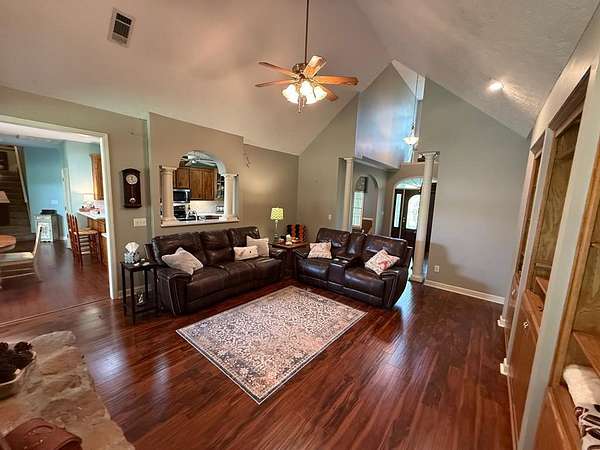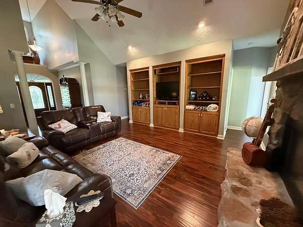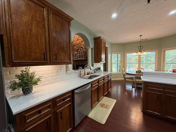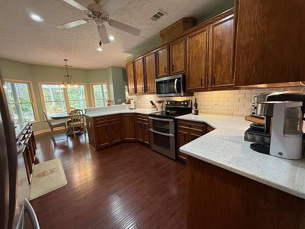 WANT TO LIVE ON YOUR OWN hilltop with a view? Spacious 4-Bedroom Brick Home on 2+ private acres. If you're looking for peace, privacy, and space,- this one owner custom builder built home has it all. Sitting on 2.06 wooded acres, this property offers a mountainside feel with winter views of Pine Mountain and plenty of room to enjoy nature all year round. This solid four sided brick custom home has been well maintained and includes a brand new roof, newer septic lines, two water heaters and two HVAC units. Inside you will find a two story foyer, Engineered wood floors in the foyer, dining room, kitchen and family room. A separate dining room with double trey ceiling. Roomy kitchen with quartz counter tops, stainless appliances, double oven, smooth cooktop, pantry, breakfast area, and breakfast bar. The family room includes custom built ins and a cozy fireplace with a gas starter. The master suite features a trey ceiling, walk in closet, whirlpool tub, double vanity, separate toilet room and separate shower. Bedroom 2 has its own walk in closet and full bath, while bedrooms 3 and 4 share a third full bath. Upstairs, there's a bonus room with a cathedral ceiling-great for a media room, office or extra living space. Outside, enjoy the covered and open patio, decorative trellis , and the kind of quiet privacy that's hard to find yet still convenient to shopping and dining. Additional features: 4 bedrooms/ 3 full baths, front porch, gutters, only one owner, mountain winter views, over 2 acres with a natural peaceful setting. This home combines space, comfort, and a rare setting you won't want to miss.