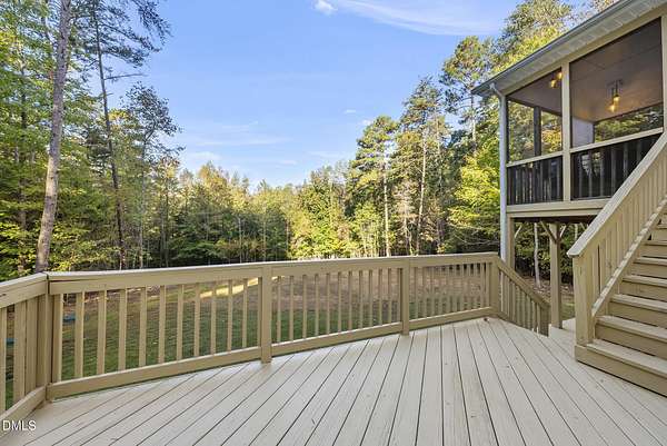 NEW PRICE! Peace & Privacy - 4 Bedroom home with Wrap Around Front Porch on expansive acreage with wooded perimeter creating a sanctuary-like escape. This 5.5 acre homesite is a place to unwind without sacrificing access to the best of the Triangle region! Main floor Primary Suite creates seamless One-Level living! First floor also includes a private office, formal dining, large kitchen and family room with soaring 2-Story ceiling. Second floor includes 3 additional bedrooms and 2 baths plus a large Bonus Room - Pool Table and accessories included! Unfinished upstairs spaces offer tons of storage! The screened porch and spacious decks bring the outdoors in, making this a home that lives seamlessly with nature. Room for a pool!!!Desirable Location on this rural escape with easy access to major corridors, making this an ideal balance of tranquility and connectivity. Don't miss the chance to own a truly special property!