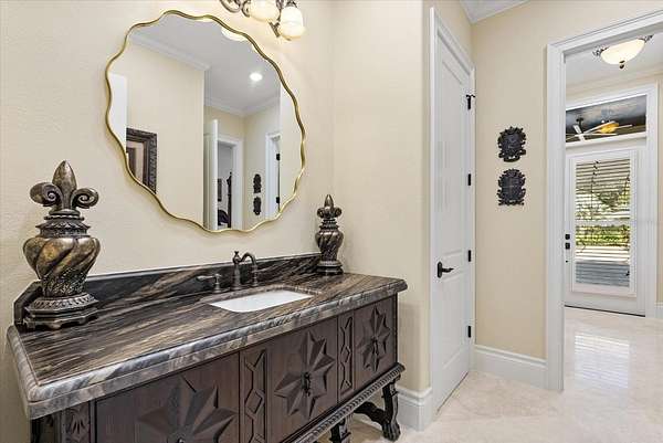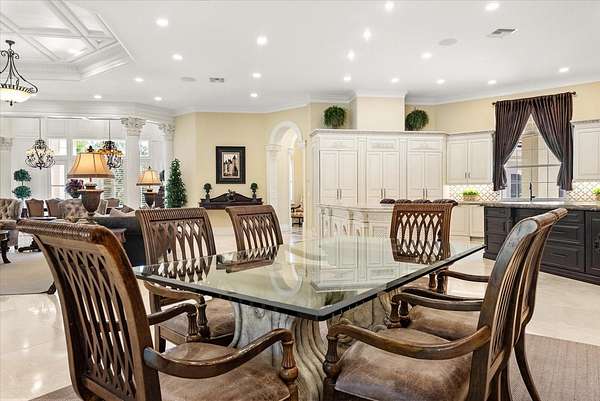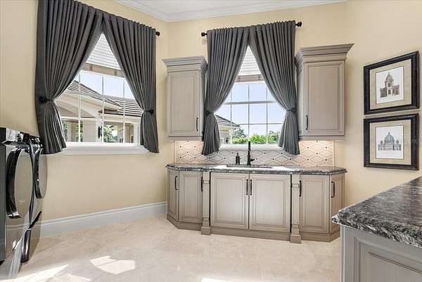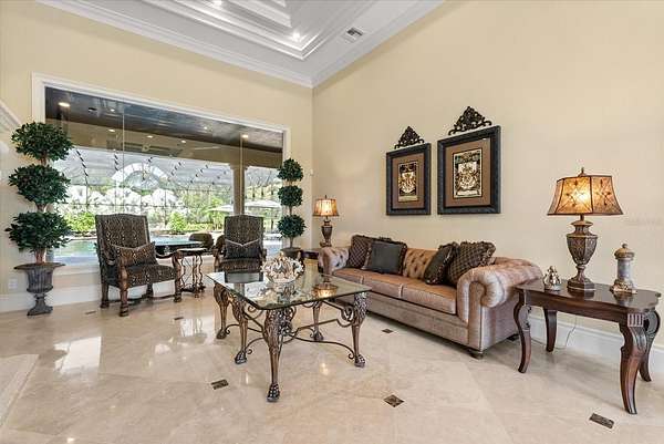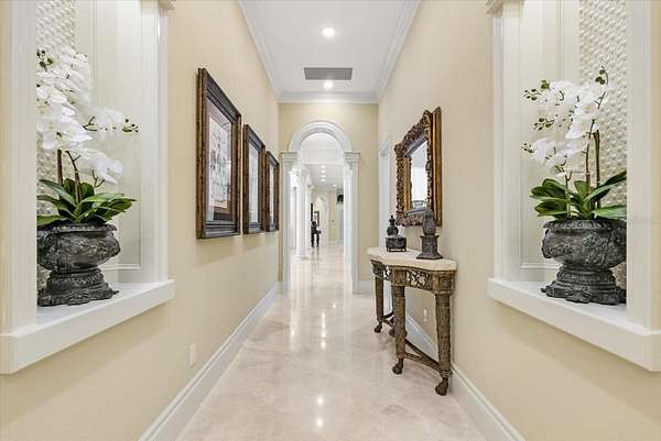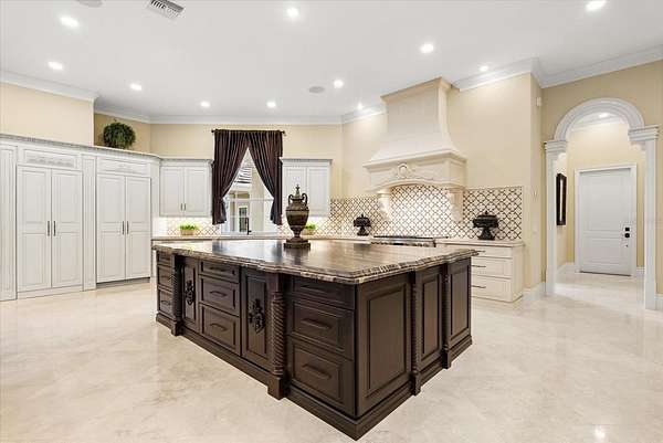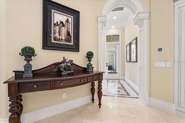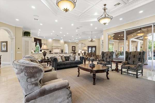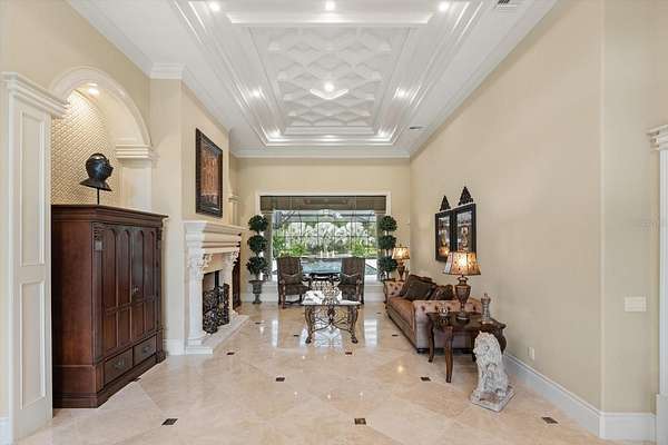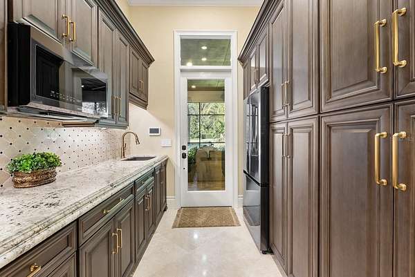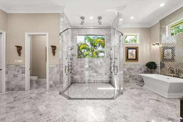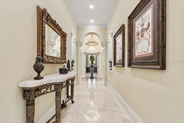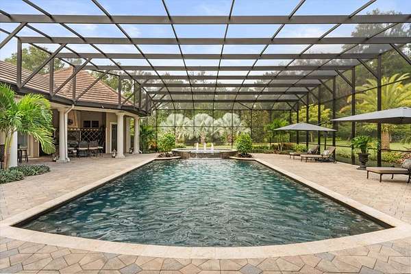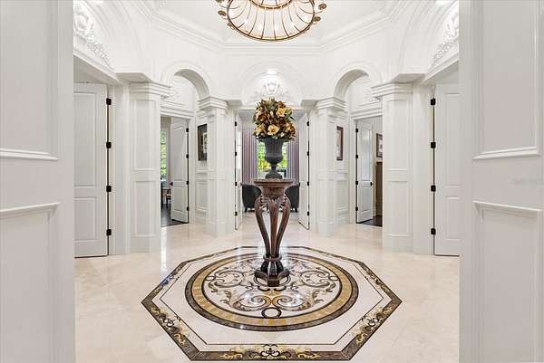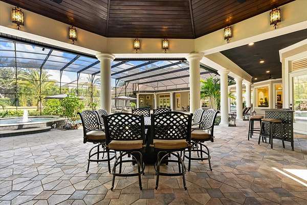 Welcome to an extraordinary estate blending timeless elegance with modern sophistication. Built by renowned luxury home builder Dave Brewer, this recently fully remodeled, executive residence showcases exceptional craftsmanship & offers an elevated living experience. Nestled within the 24-hour guard-gated Sweetwater Club, the property spans nearly three acres of meticulously landscaped grounds, creating a serene private retreat. A sweeping driveway welcomes you, framed by new custom landscaping. Lush grounds feature vibrant plantings, dramatic lighting, & thoughtfully designed outdoor living areas, setting the tone for a world-class lifestyle. Through grand arched double doors, the interior reveals a stunning open floor plan filled with natural light. Soaring ceilings & expansive windows highlight the home's architectural beauty. Travertine flooring with intricate inlays flows throughout the main living spaces, while rich hardwood floors add warmth & elegance to the bedrooms. The gourmet kitchen is designed for a culinary enthusiast & outfitted with top-tier appliances, including dual ovens, a built-in refrigerator & freezer, and a second oven in the hidden butler's pantry. Double-stacked granite countertops and a custom stone range hood elevate the space, while the expansive butler's pantry provides ample storage & prep areas for effortless entertaining. Each bathroom serves as a personal sanctuary. Luxurious finishes, double-stacked granite countertops, custom vanities, & full-wall stone-tiled showers with artistic inlays create spa-like experiences. The owner's bath features a soaking tub & shower with multiple jets & a rain shower designed for relaxation. While another bathroom includes a steam room, sauna, & rain shower, offering a true wellness experience at home. Ideal for entertaining, the outdoor living space features a newly remodeled saltwater pool & hot tub finished with Italian tile & exposed aggregate, both equipped with advanced automated controls for effortless operation. A custom stone fireplace adds warmth & ambiance. The outdoor kitchen is fully equipped with stainless steel cabinetry, a new grill, side burner, sink, refrigerator, freezer, & television--perfect for hosting gatherings. Built-in Bose speakers throughout create the perfect atmosphere. Every element reflects expert craftsmanship, from detailed moldings & tray ceilings to beautifully textured walls. Laundry rooms combine style & function, including a steam unit & additional appliances to support outdoor entertaining. Modern amenities include three new gas water heaters, energy-efficient LED recessed lighting, & a high-end security system with 14 surveillance cameras. Exterior lighting by Fine Art Handcrafted Lighting highlights the home's beauty day & night. The home offers exceptional flexibility with two private offices, a fitness room, a cozy media room, & spacious storage above the garage. These spaces can adapt to your needs as additional bedrooms, game rooms, or a home theater. Sweetwater Club offers private tennis & pickleball courts, a basketball court, & access to Sweetwater Beach on Lake Brantley. Enjoy boating, water skiing, fishing, sailing, & kayaking. This is a rare opportunity to own a property embodying luxury, privacy, & comfort at the highest level.