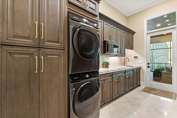 - Dishwasher, Dryer, Garbage Disposer, Microwave, Range, Refrigerator, Washer, Wine Storage Refrigerator