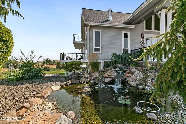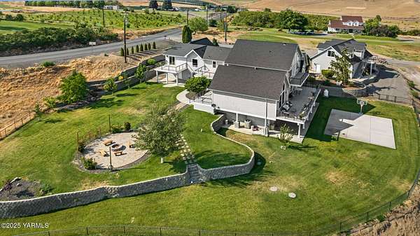 A wonderful oasis to enjoy the tranquility of a serene lifestyle. This exceptional home was completely remodeled and new additional construction of 4000 SF completed in 2012, which includes a new well and septic system. This multiple level home boasts 3 primary suites with views and access to their own private deck/balcony. Each level has its own laundry room, furnace and heat pump. There are 4 living rooms, which one could be a theater room. Game room with pool table, and a second kitchen with eating bar situated in lower level. The detached 3 bay garage has it own furnace and AC and electrical panel. Above the garage is a full gymnasium (900 SF) with its own outside access and views from each dormer window. Backyard is fenced and there is plenty of room to add an inground swimming pool. Beautifully landscaped, fish pond/fountain and with basketball court to enjoy the outdoors. This parcel has 1 share of Selah/Naches Irrigation. Contact your favorite Realtor to tour this amazing home and all it offers-Buyer to verify square feet to their own satisfaction.
