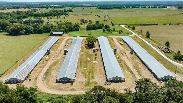 Est $4,193/moGreat SIMMONS starter farm - small bird for SWC and 6.5 flocks per year, 17 ac mol (small portion of timber), open 4- 40x400's with contract - no known updates, ready for a new grower. * BIO SECURITY IN PLACE - DO NOT ENTER WITHOUT AN APPOINTMENT *SEE ALSO MLS 1334995