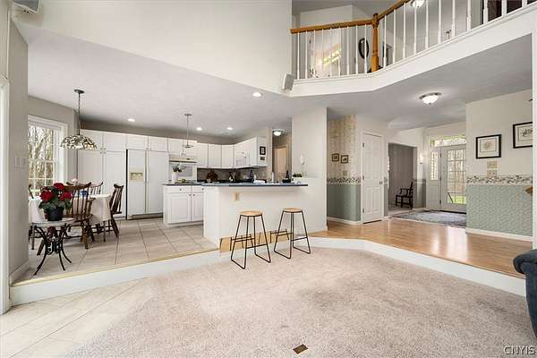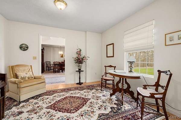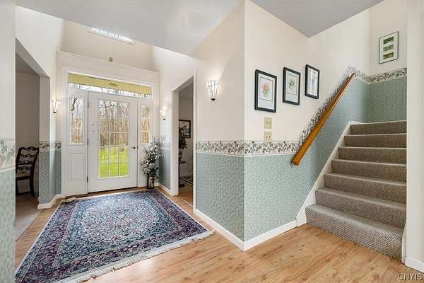 Est $3,199/mo5.62 peaceful acres with a bright and open versatile floor plan. Formal and informal primary spaces flow into a light flooded fireplace gathering room open to a great kitchen. You'll love the main level primary suite with new bath and large walk-in shower main level laundry three large bedrooms with full bath on second level... Partially finished lower level two stall attach Garage, Sauquoit schools too!