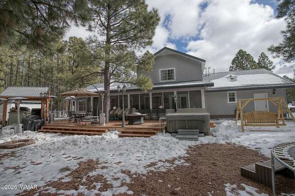 This one's Special!!! Totally remodeled 2 Acre Estate backing National Forest fully fenced with electric gate for your privacy also crossed fenced for your pets. Access gate to walk into the National Forest with seasonal creek 1/4 -1/2 Ml. away during monsoon season, set in your privet backyard and Liston to the water rushing by. Horse privileges, home is perfect for entertaining with lots of parking, fully screened-in patio huge redwood deck off the back patio with Hot Tub, built in BBQ, storage shed and woodshed. Huge kitchen with Granit countertops and soft close cabinets, Primary bedroom is on main floor with walk-in shower also on main floor two guest bedrooms and bathroom upstairs loft with bedroom and bathroom, two car garage and garden shed/workshop with raised flower/garden beds
