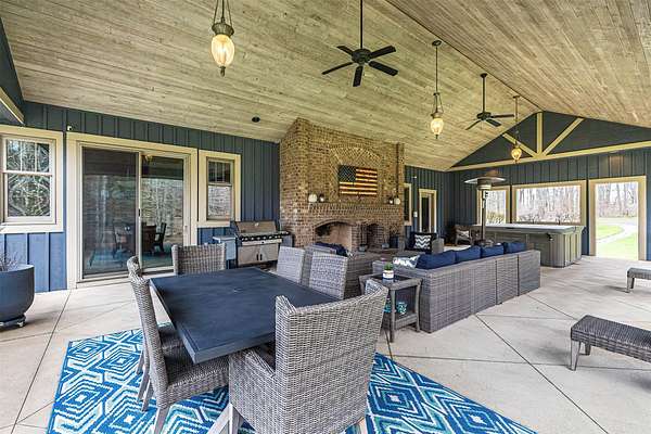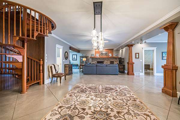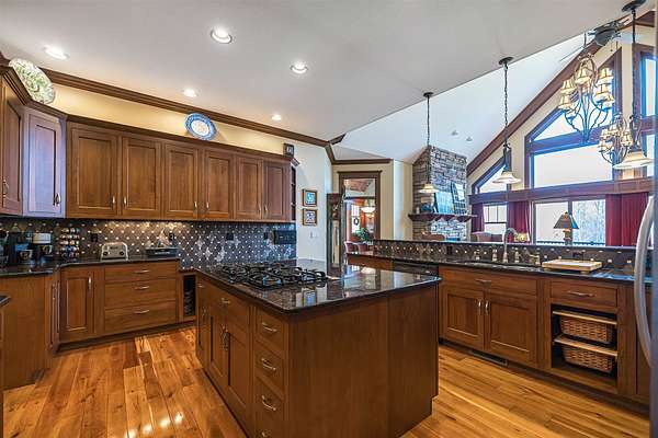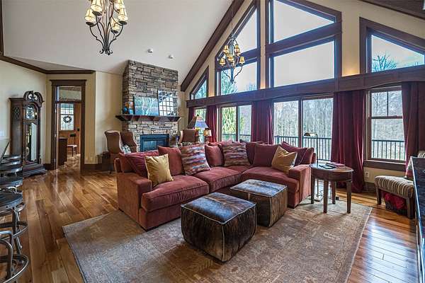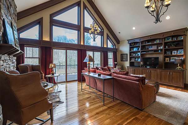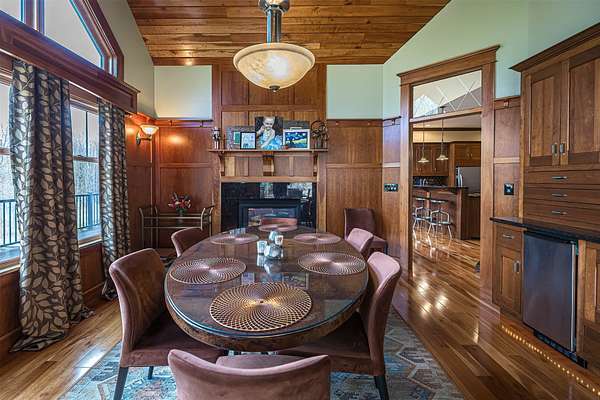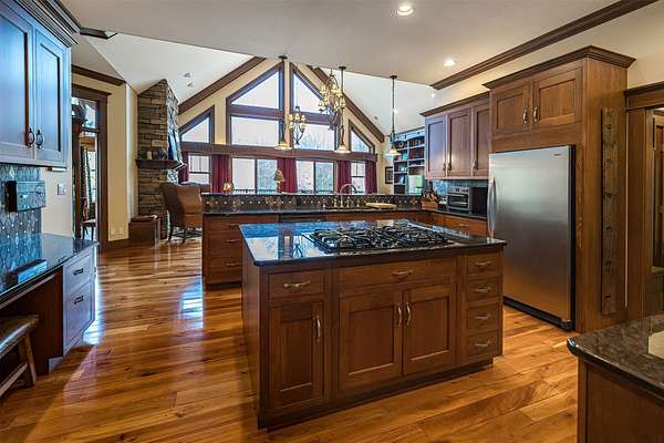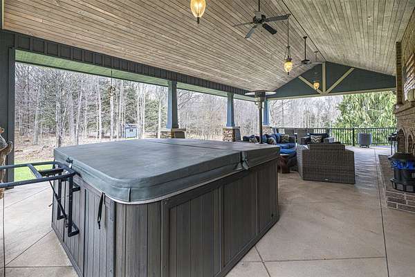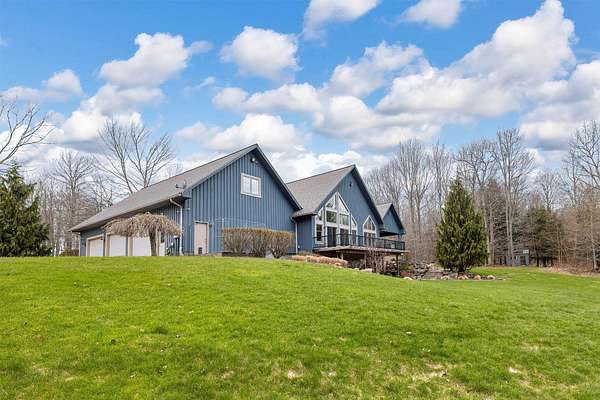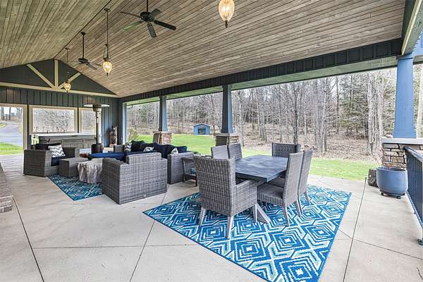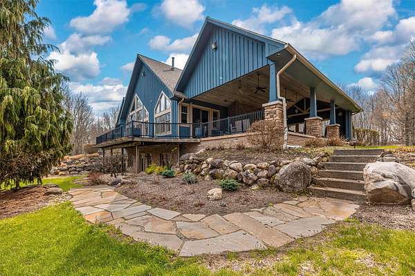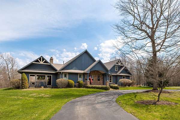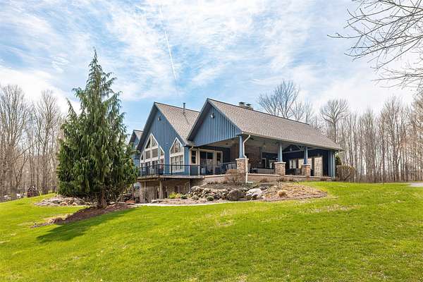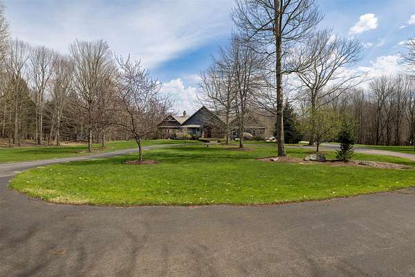 Tucked away on 14.85 acres is this stunning custom cedar-sided home. Quality abounds, 3/4" solid cherry flooring, Italian porcelain tile, soaring ceilings & incredible views of nature out every window. 1st fl. Mbr features a spectacular glamour bath w/steam shower, dual sinks & walk-in closet. GORGEOUS cherry kitchen w/stunning ctops, tons of work space, 2 ovens, huge walk-in pantry & freezer. The grand great room has vaulted ceilings, built-ins, deck access, views galore & a 2-sided stone gas FP. Entertain guests in style in the formal DR complete w/FP & practically a 2nd kitchen or entertain outside in the 44x24 covered patio w/WBFP & hot tub. The 2nd fl. offers an ensuite BR plus an office/BR w/built-ins. The fully finished walk-out LL has a dining/pool table area w/wetbar, another WBFP, playroom, huge full bath & 2 add'l bedrooms. A chicken coup, 18x18 storage shed & she-shed complete this picture-perfect home! New roof '25 & exterior stain too! Do not go down driveway w/o appt