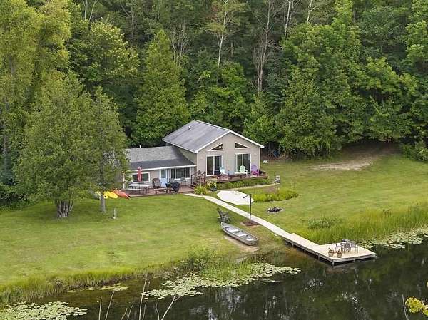 Nestled on a serene riverbank with 450 feet of waterfront access leading to the pristine Lake Saint Clair, this delightful five-bedroom, two-bathroom cottage offers a perfect blend of charm and tranquility on 5 acres of lush land. With 1,250 square feet of cozy living space, this retreat is the ideal sanctuary for those seeking waterfront living. Step inside to discover a welcoming interior featuring comfortable bedrooms, a well-equipped kitchen, and a warm living area, perfect for relaxing or hosting guests. The outdoor space is a true gem, with a generous waterfront deck where you can enjoy the soothing river views, host gatherings, or simply unwind in the peaceful surroundings. This tranquil river is part of the chain of lakes, with Intermediate Lake resting at the southwest end and Six Mile Lake at the southeast end, offering endless opportunities for exploration and enjoyment on the water. Whether you're looking for a peaceful escape or a waterside playground, this property offers endless possibilities. Embrace the beauty of waterfront living and make this charming cottage your own private haven. Don't miss the chance to own a piece of paradise on the tranquil riverbanks leading to Lake Saint Clair and connected to the stunning chain of lakes!