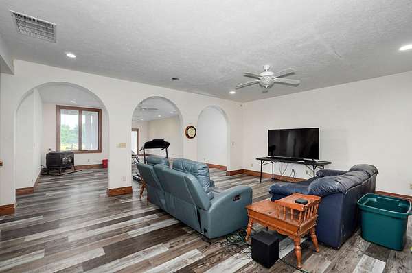 - Central, Forced Air, Pellet Stove, Radiant, Radiant Floor