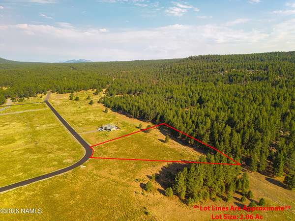 Located beside another available homesite, this 2-acre exterior corner parcel offers sweeping views of the San Francisco Peaks and a tranquil mountain setting within the Ranch at the Peaks community. Just minutes from Arizona Snowbowl and surrounded by open forest, this property provides a perfect blend of seclusion and convenience. Utilities - including natural gas, electricity, and private water service - are available at the lot line. With a 2,000 sq/ft minimum build requirement, homes here maintain a consistent standard of quality and design. This parcel is being offered alongside the neighboring 2-acre lot, creating a rare opportunity to purchase one or both parcels and enjoy up to nearly 4 acres of contiguous land in this desirable location.