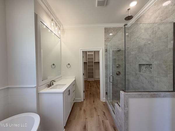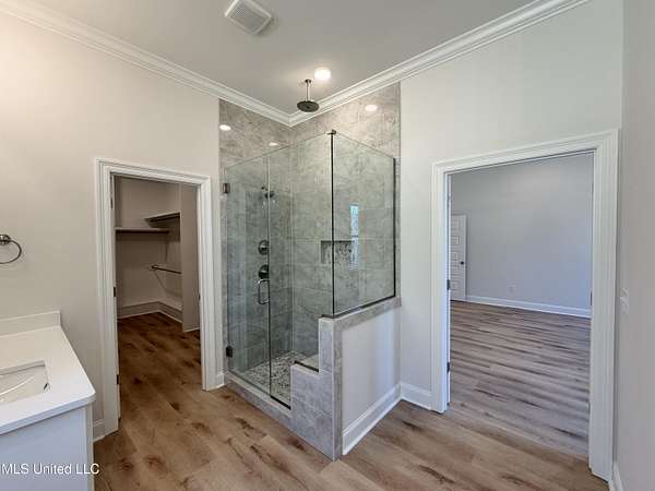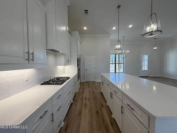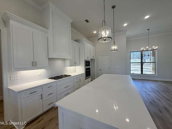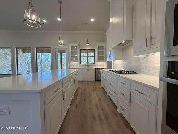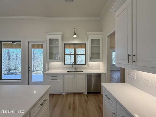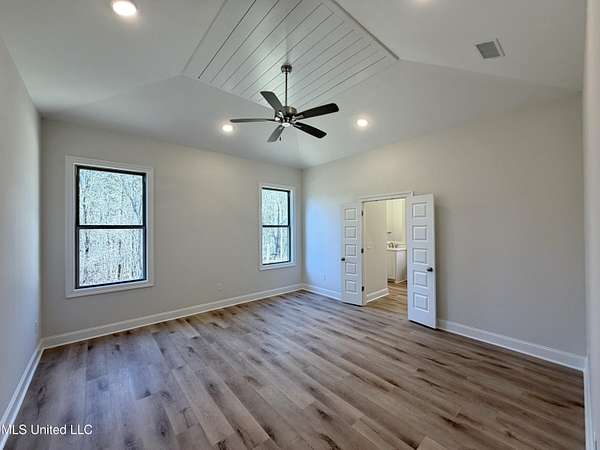 Tucked away on a 2.20-acre wooded lot, this new construction home was just completed and offers privacy that is truly hard to find, with a long private driveway setting the tone the moment you arrive home. Featuring 4 bedrooms, 3 baths, 2,350 square feet, and a 3-car garage, this home delivers both space and thoughtful design. An inviting front porch welcomes you inside to a large, open floor plan with a spacious living room complete with built-ins and expansive windows across the back of the home that fill the space with natural light while overlooking the surrounding nature. The kitchen is a standout with a massive island, sink positioned under a window, abundant cabinetry and storage, cooktop, built-in oven, and a walk-in pantry perfectly designed for a coffee bar. The layout is exceptionally well planned, with a private front hallway leading to the third full bath and fourth bedroom, ideal for guests or a home office, while the back hallway connects two bedrooms with a Jack-and-Jill bath featuring a double vanity. On the opposite side of the home, a dedicated hallway off the kitchen leads to the primary suite, which features a vaulted ceiling and a stunning private bath with a custom tiled shower including both standard and rain showerheads, a freestanding soaking tub, double vanities, and a spacious walk-in closet with built-ins. A desirable (but often overlooked) feature is the laundry room's direct connection to the primary closet, offering everyday convenience, and the laundry room itself includes built-ins, storage, and a utility sink. Entering from the 3-car garage, you'll appreciate the built-in stop-and-drop area designed to keep coats, shoes, and daily essentials organized. Outdoor living shines here as well, with a massive covered back patio featuring two ceiling fans, pre-wiring for a TV, and a propane stub ready for a grill. Designed with organization in mind, the home features extensive cabinetry and walk-in closets with built-ins in every bedroom. Additional notable features include high-end quartz countertops, durable and easy-to-maintain LVP (Luxury Vinyl Plank) flooring throughout, a PEX manifold plumbing system serving as a central distribution hub, and an upgraded, builder-installed enhanced water treatment system, making this home a rare blend of privacy, quality, and thoughtful craftsmanship. This is one you do NOT want to miss. Call your REALTOR today to schedule a showing!