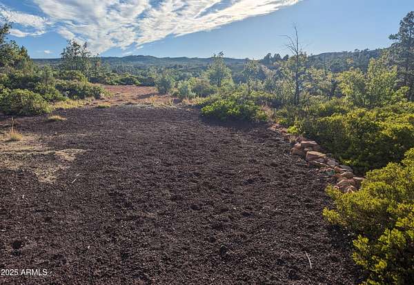 The property is in Timberland Acres, a community of about 317 lots, located 1 mile south of the 260 and surrounded by National Forest Service. It's a great location for building a cabin in the mountains or living full-time. The elevation is around 6564'. Property is covered with Alligator Junipers, Gambel Oaks, Manzanita, Ponderosa Pines & Scrub pines with views to the Mogollon Rim. The pad from the previous home is still intact. Road frontage is approx. 177'. Septic system (1000-gallon capacity) is installed, and electricity and water are at the lot line.